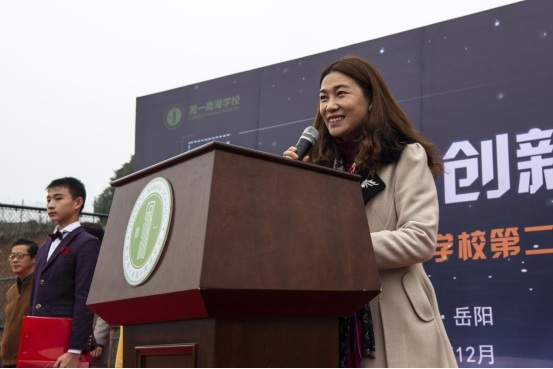 湘一南湖党支部书记、副校长杨旭丽致闭幕辞,希望同学们发挥聪明才智,尽情展示才华,勇攀科学高峰。