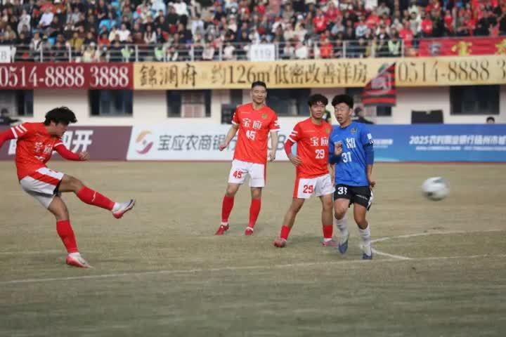 今天14点30分, 2025扬州市城市足球联赛 县域组半决赛展开第二场较量, 宝应队坐镇主场迎战江都队。