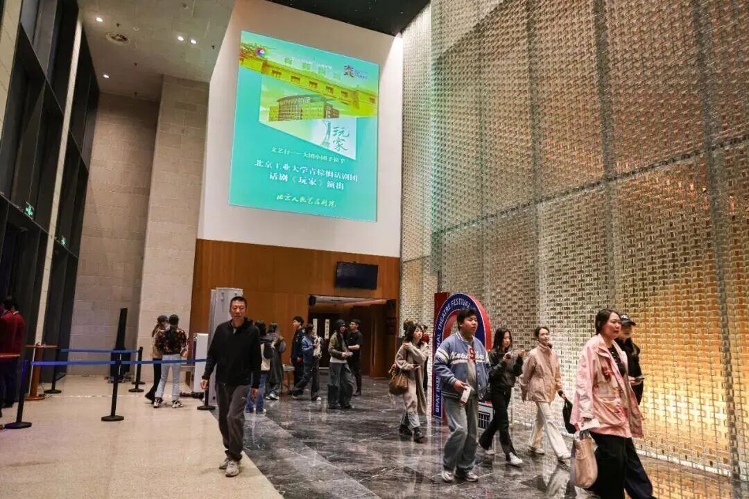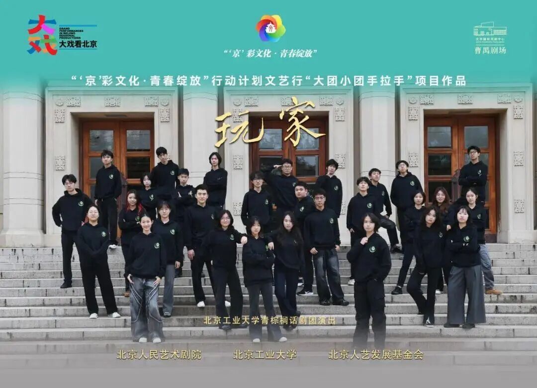 10月12日,由北京人艺指导、北京工业大学青棕榈话剧团学生演出的《玩家》,在北京国际戏剧中心·曹禺剧场的舞台上演。这是北京人艺走进高校,与学生社团携手共建、创新探索的生动实践,也是落实2025“‘京’彩文化 青春绽放”行动计划、推行“大团小团手拉手”文艺行的收官之作。当晚演出也被纳入“大戏看北京”进校园单元,为高校美育注入新的力量。同时,“戏剧的力量——北京人艺进北工大”专题展览将于10月21日在北工大学生活动中心举办。