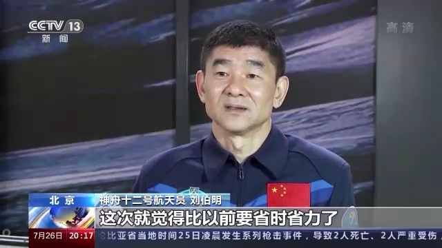 神舟十二号航天员 刘伯明:在舱外爬行的时候,那是非常的吃力,因为大多数的体能都消耗在这上面了,这次就觉得比以前要省时省力了。
