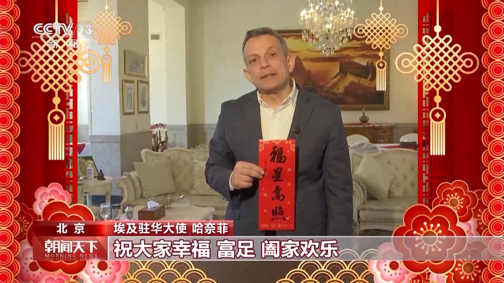 埃及驻华大使 哈奈菲:春节对中国人来说是个特别的时刻,对我们在这里生活的人来说也是如此,我们共同欢度这一重要节日。蛇年有很多特殊含义,也是我的本命年,所以对我而言也很值得庆祝。人们会返乡、回到根脉所在之处,与老老少少的家人团聚。