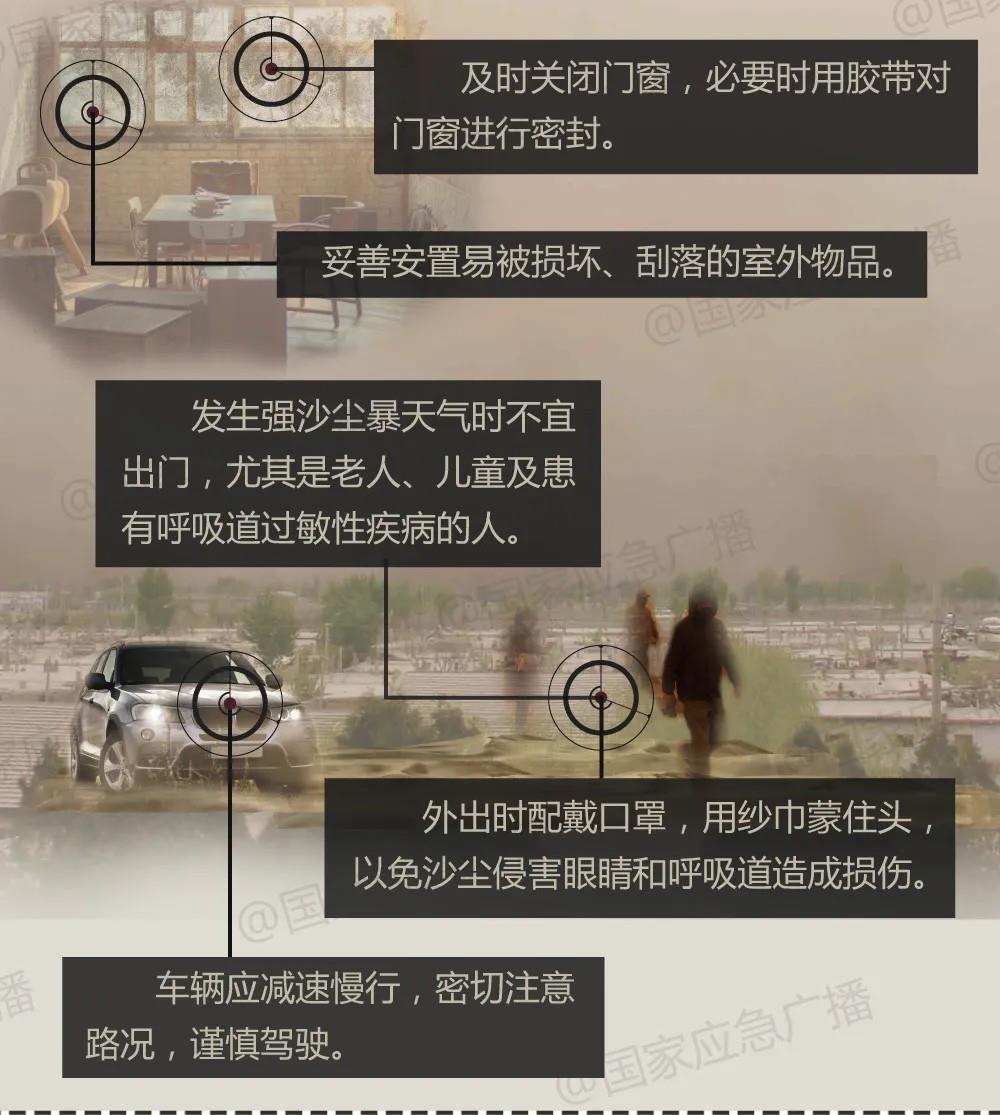 气象部门提醒,针对北方大风、沙尘天气过程,建议公众及时关闭门窗,减少外出,避免在广告牌和树下逗留,相关部门要做好防风加固以及森林草原防火工作。