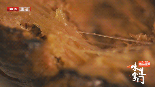 月盛斋还一直保留着一口青花瓷的大缸,缸上面有个明显的破洞,这可以算是月盛斋的宝贝,百年以来,日复一日,年复一年,每一次酱肉的汤,都存放在这里。老汤的妙,体现在上面浮着的一层油,它吸收了汤里所有的香气,不仅可以提香,还可以滋润牛羊肉,使肉不干也不柴。