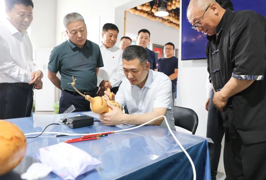 焦家浸烙葫芦技艺非遗传承人焦宇做非遗技艺展示。
