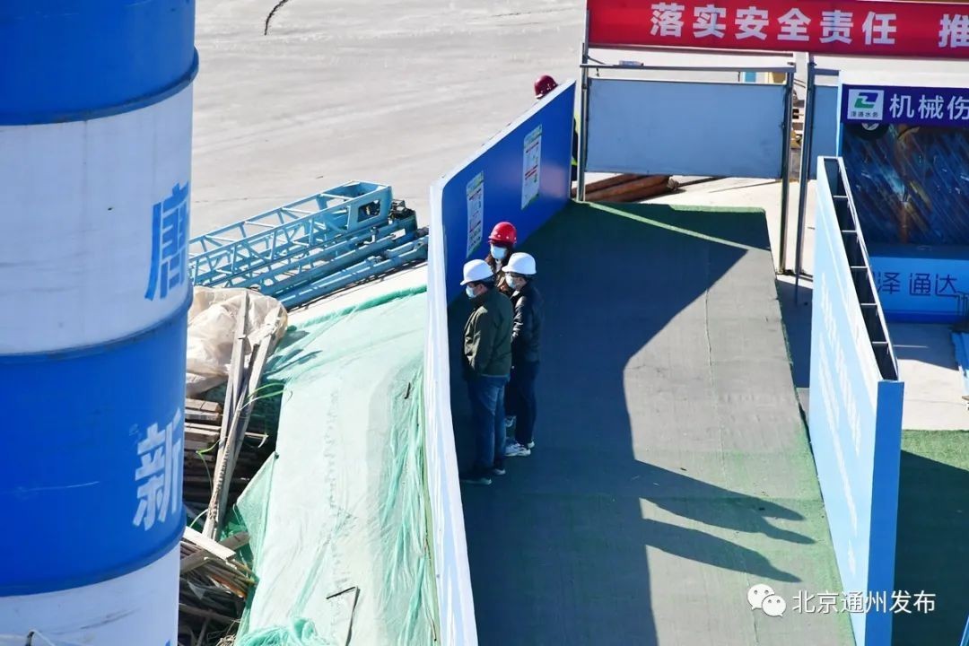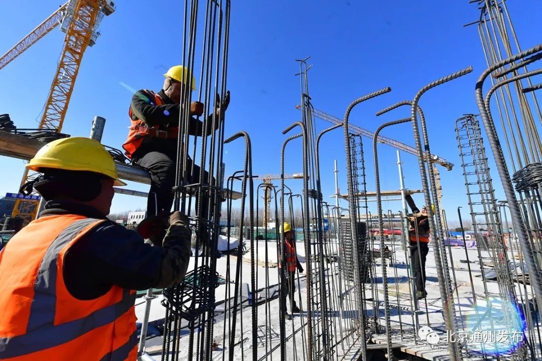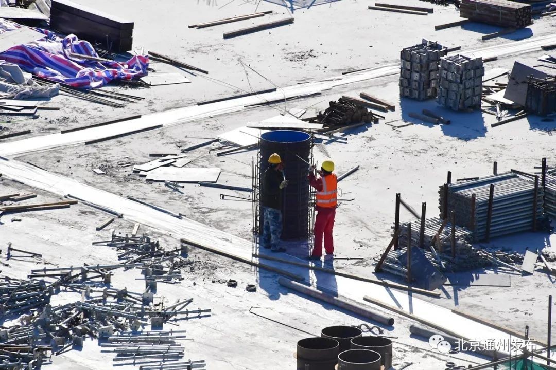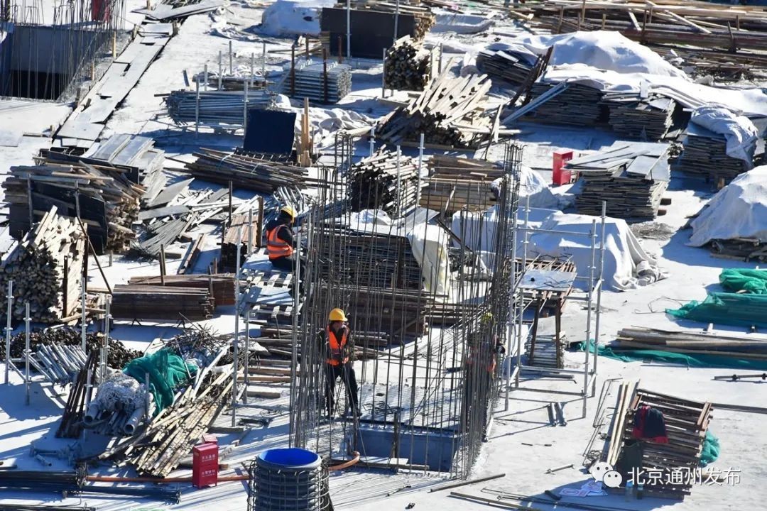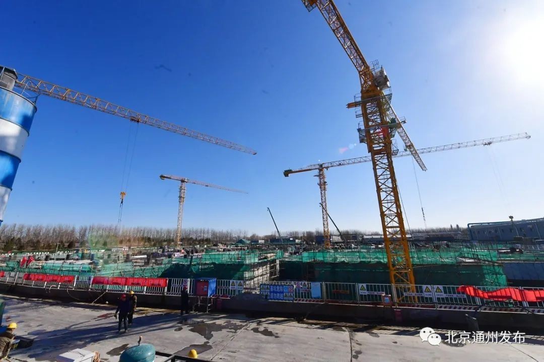 4台巨大的塔吊下,百余名建筑工人往来穿梭。距离项目一步之遥的就是正在运营的通州区河东再生水厂。