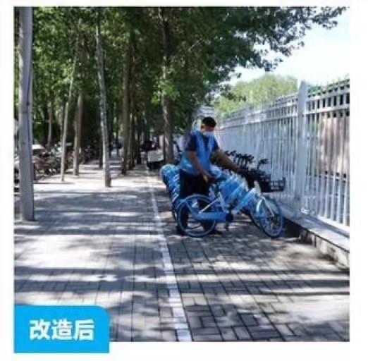 为解决这一问题,区城管委市政设施管理中心会同区交通局、共享单车企业等相关部门的工作人员,共同到现场勘查,通过协商讨论,最终决定将车站北侧原有300平方米地面进行硬化并设置非机动车停车位,同时将自行车及共享单车停车区域进行扩大。