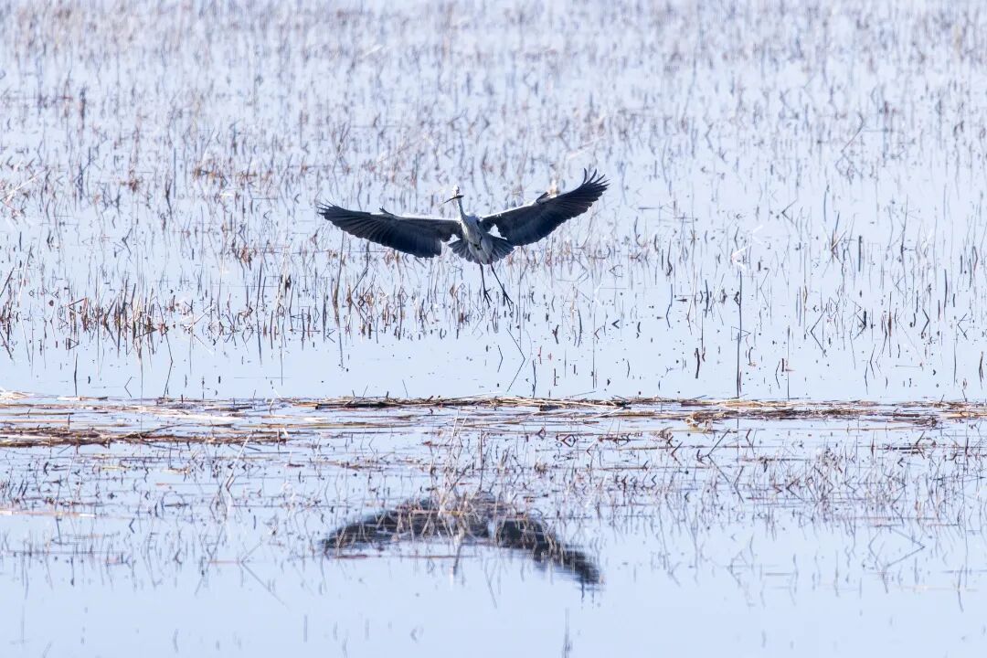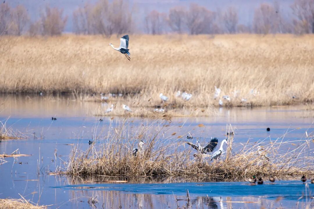 据监测,目前湖区已有两千余只豆雁集结,花脸鸭、小天鹅等国家二级保护鸟类千余只在此栖息,白骨顶、凤头䴙䴘也纷纷回归栖息繁殖地。3月中旬将进入迁徙高峰,届时,将有数万只过境鸟类,数十种迁徙候鸟在此停歇补给,形成“万鸟翔集、千羽游弋”的壮观景象。