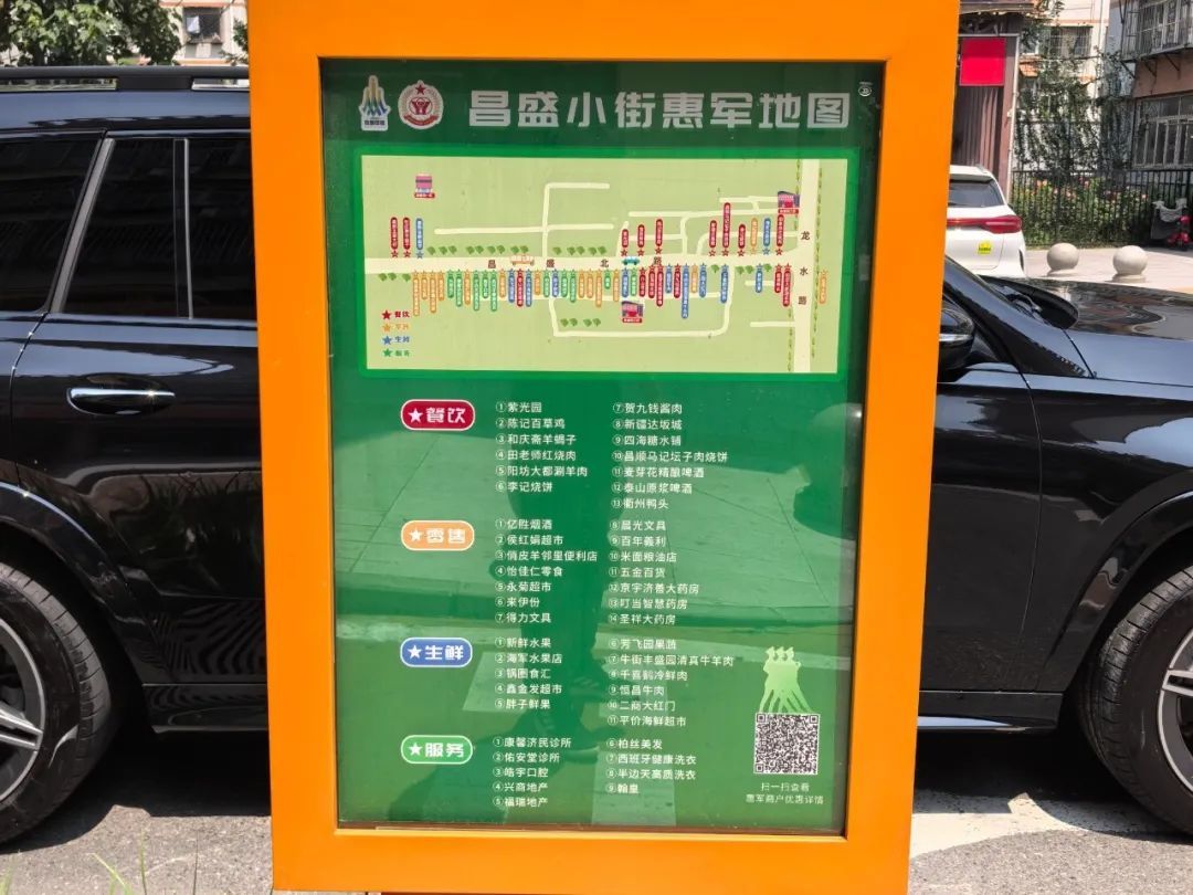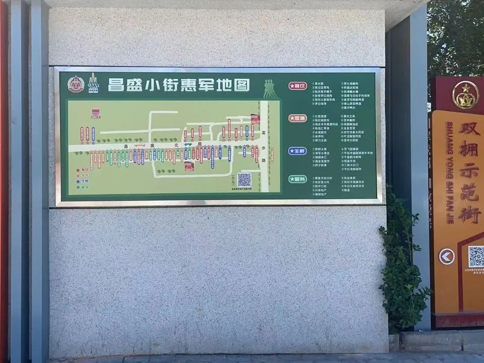 商居同盟特别发布“昌盛小街惠军地图”,清晰标注每家惠军商户点位,扫描地图二维码下载“城南相伴”App还可查看优惠详情。同时每家惠军商户在店内外安装专属标识,从昌盛小街到龙水路,惠军网络覆盖600米小街,形成“标识统一、优惠透明、服务可感”的军民融合消费体验,构建起“百米有优惠、消费享尊崇”的拥军场景。