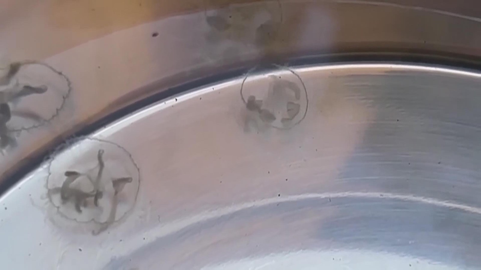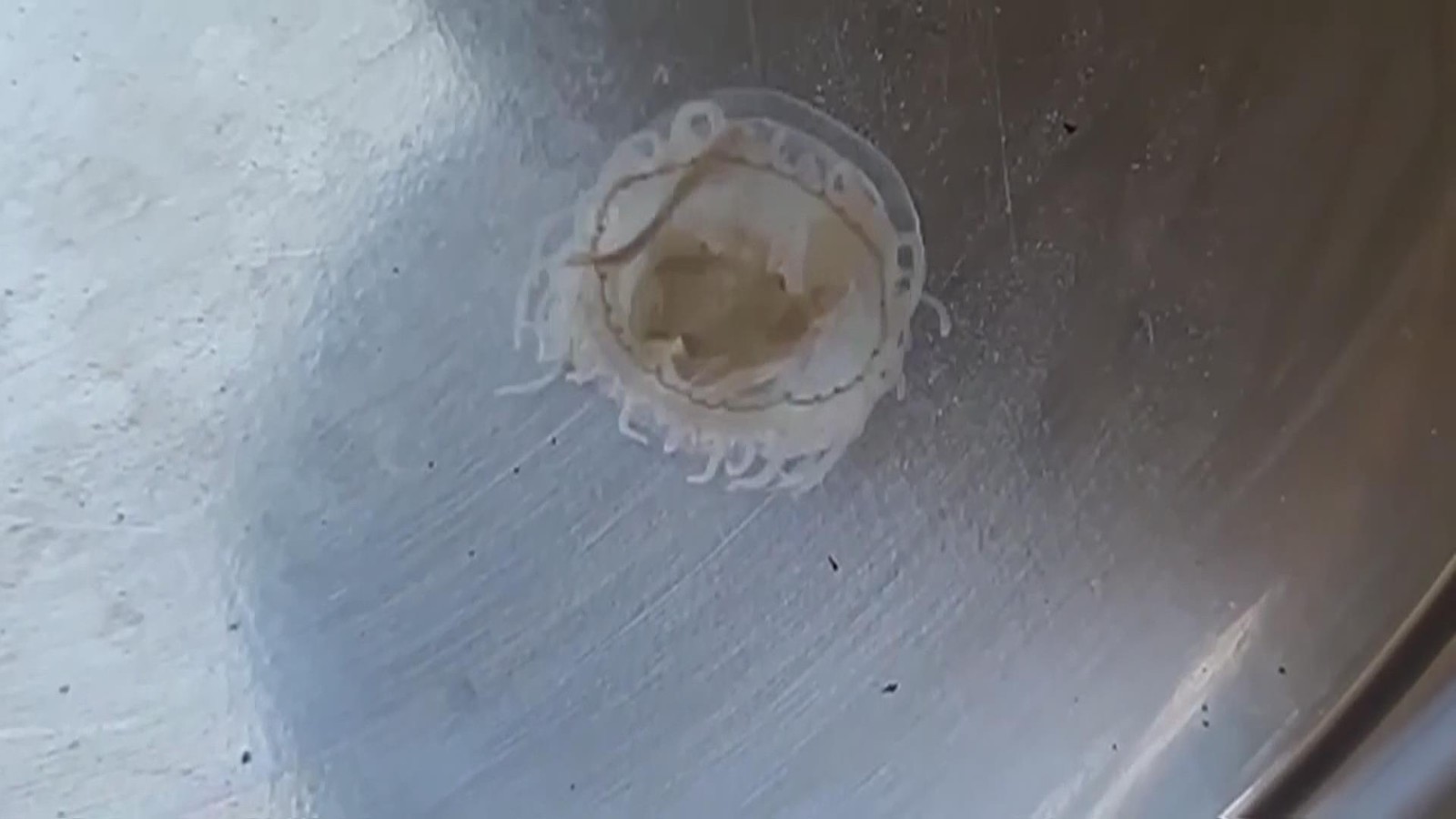 中国环境科学研究院研究员 宋福:我们到现场以后,看看他们采来的标本和现场,我看还就是桃花水母,而且咱们这黄松峪水库这地方,我看的分布还是比较多的,大概我估计了一下,一个平方米里边有两个到三个,这个还是密度比较高的。这个桃花水母,它是对水的要求是很严格的,有一点儿污染或者有一点儿毒性,它就死了,不是说任何水体都能长的。