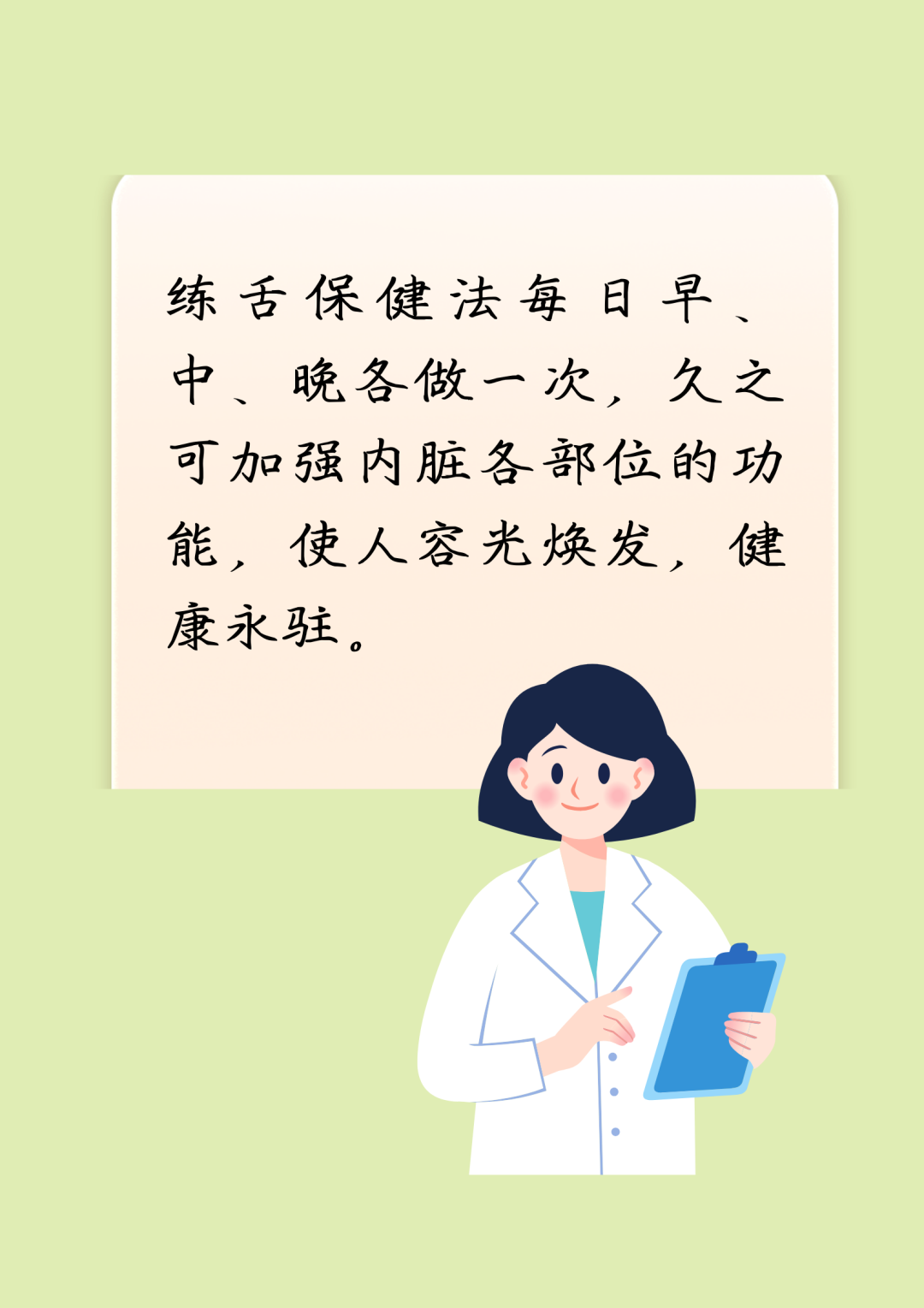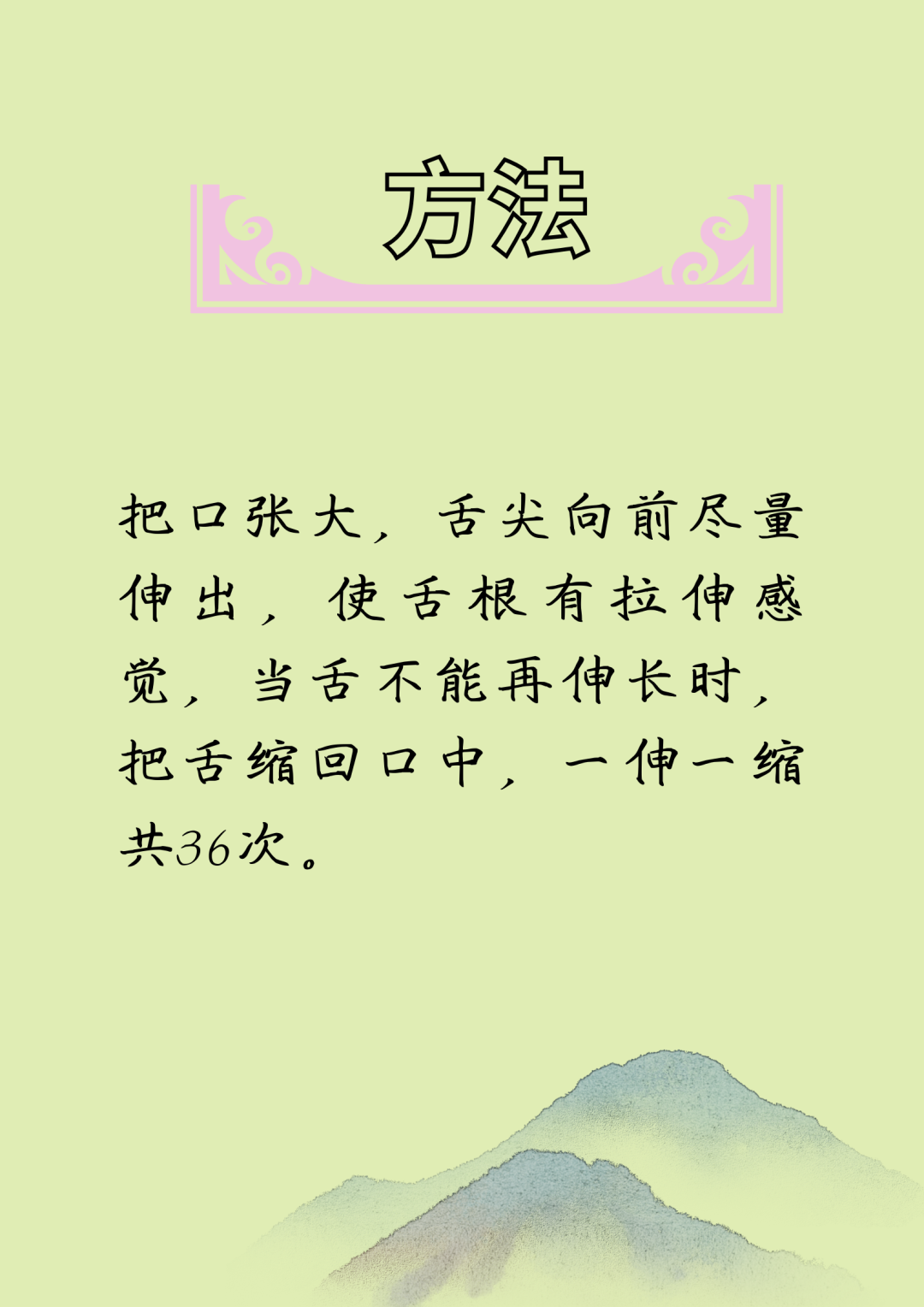 中医学认为,人的舌头与内脏有着密切的关系。如舌尖属心肺,舌心属脾胃,舌根属肾,舌两旁属肝胆。因此,经常运动舌头,可加强内脏各部位的功能,强身健体,延缓衰老。下面为您介绍舌头运动六小招,助您健康长寿。