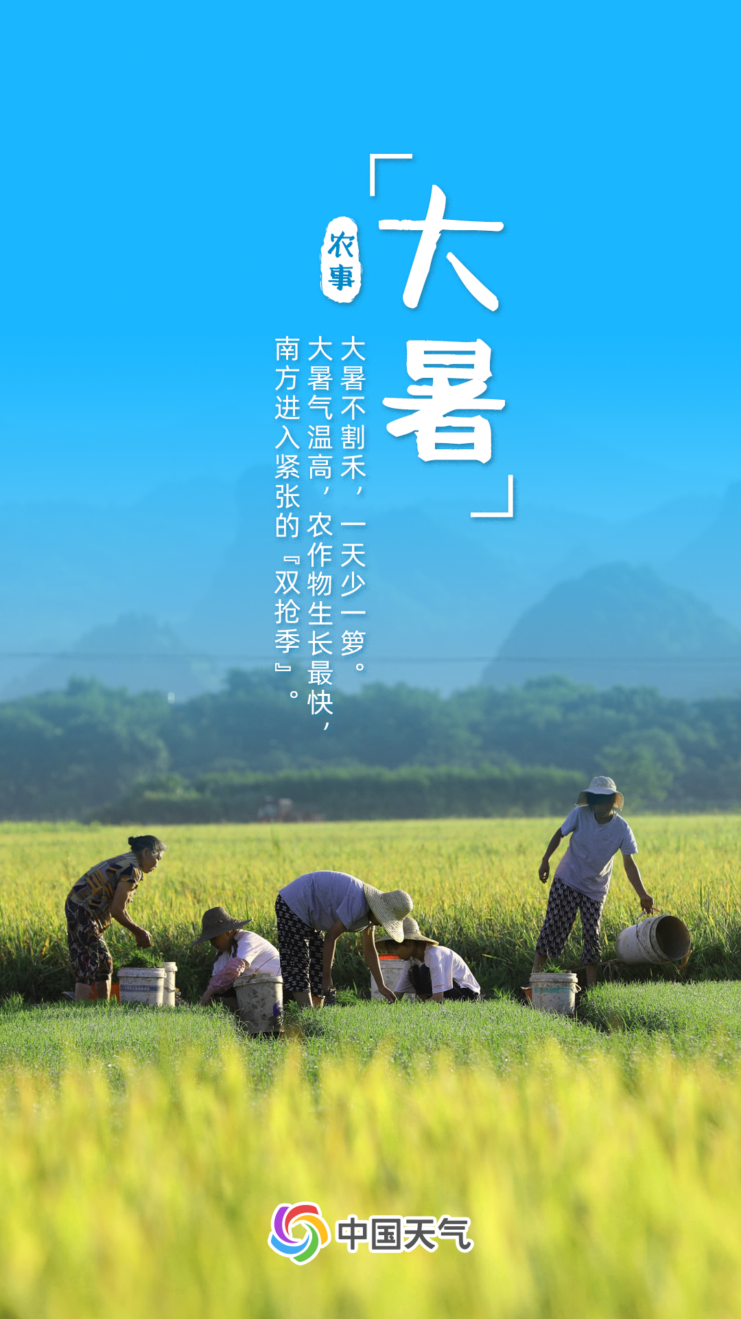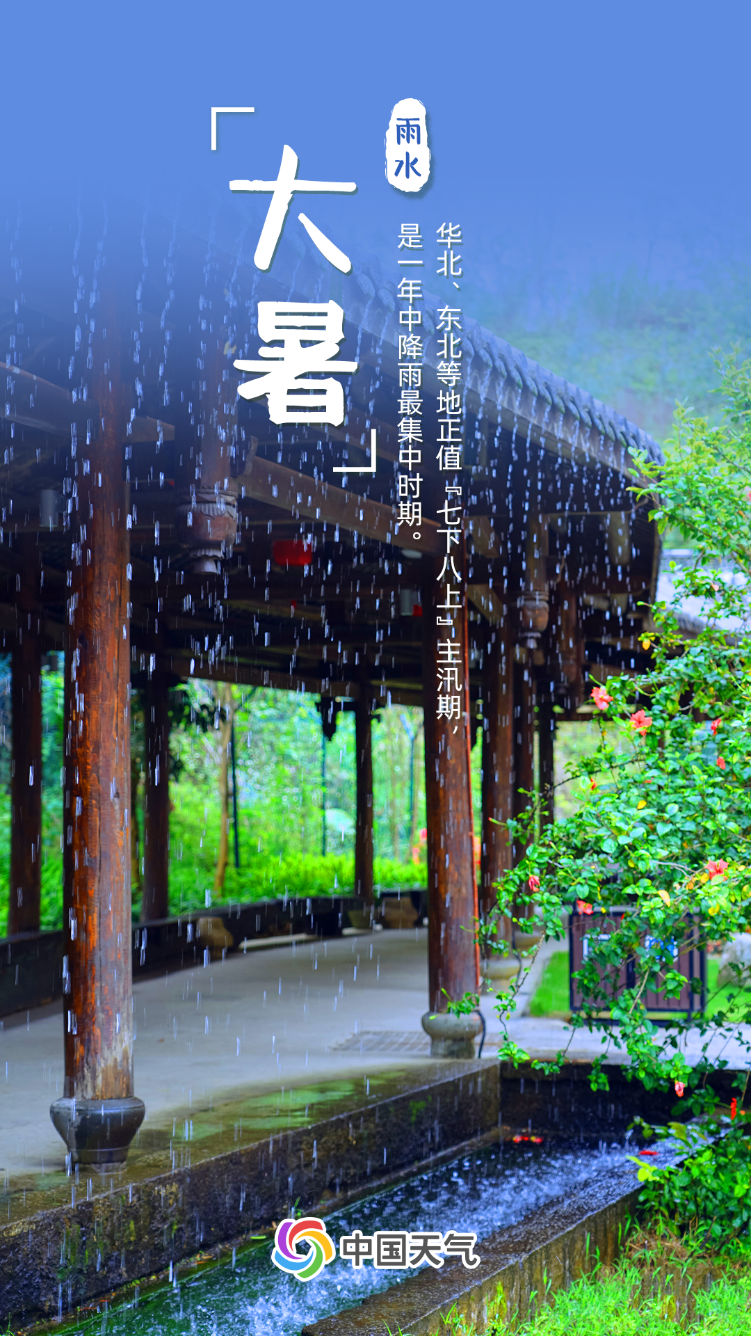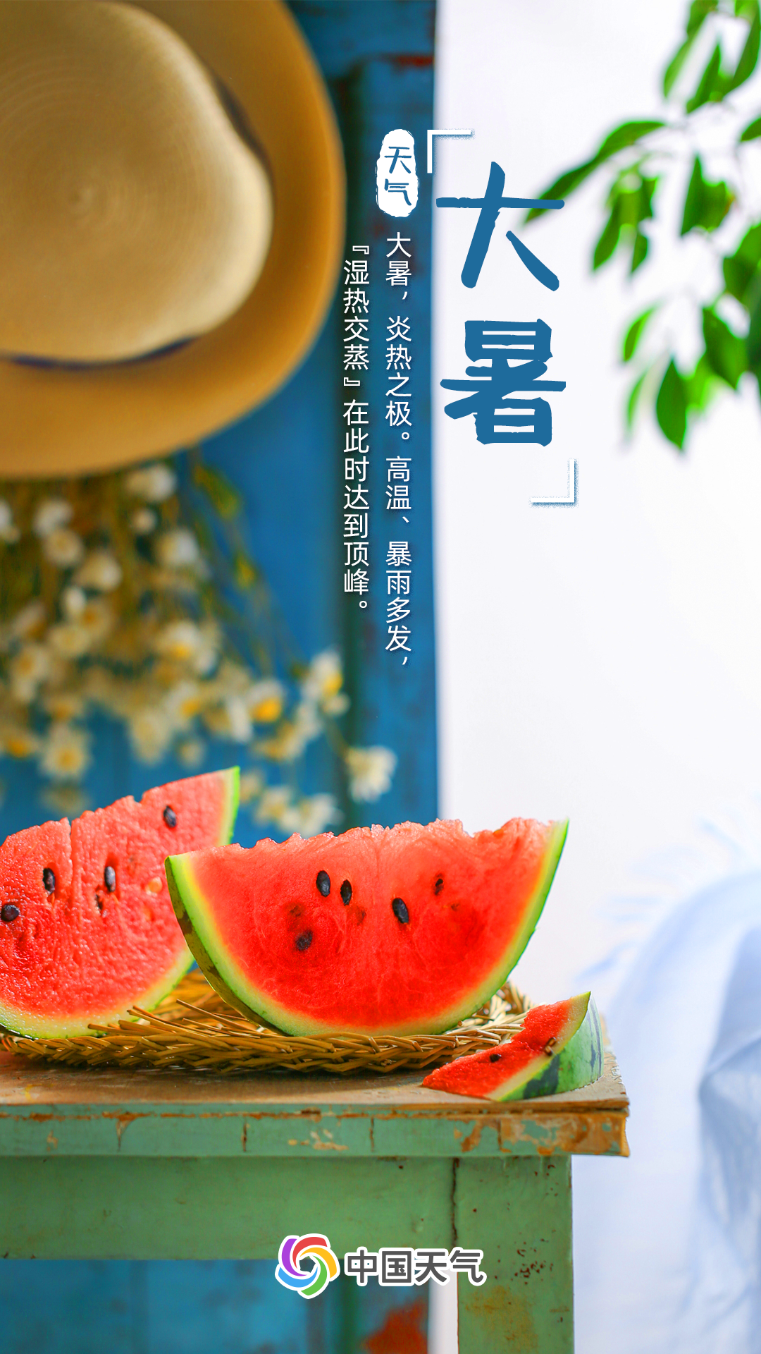 “南州大暑何可当,雪冰不解三伏凉。”大暑正好处于“中伏”前后,为一年中最热的时段,此时我国高温、暴雨多发,“湿热交蒸”达到顶峰,南北携手热如“蒸笼”。