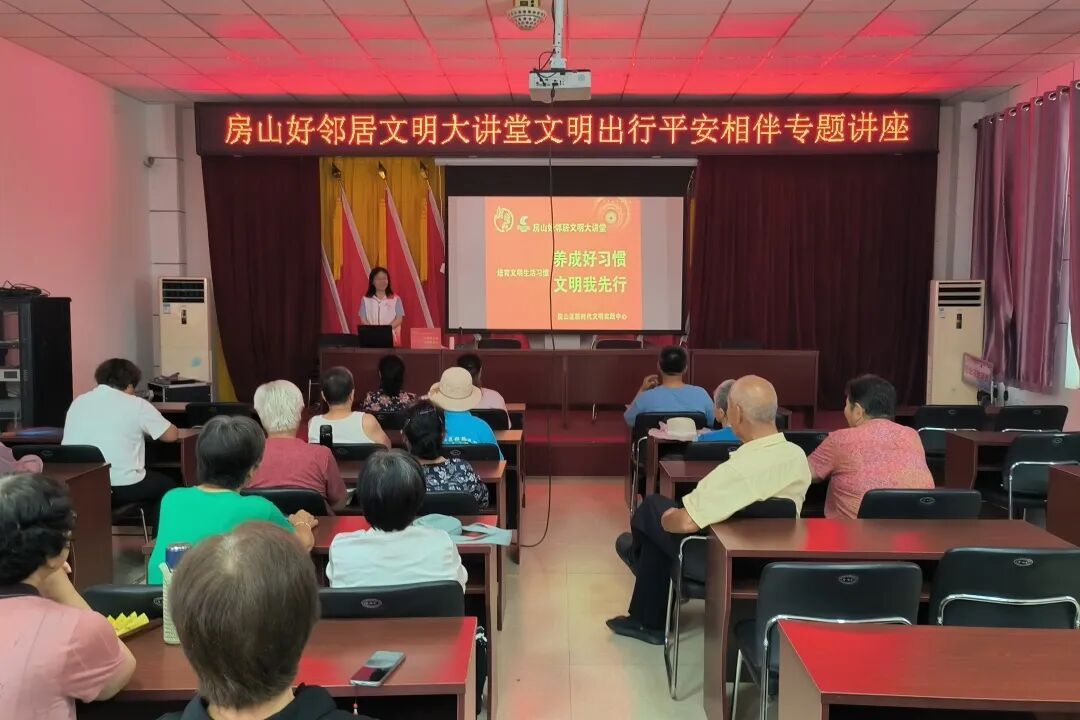 河北镇居民口中的“房山好邻居”文明大讲堂,藏着宣讲的“民心密码”。摒弃说教式灌输,用拉家常的方式,把文明出行、安全防护等知识送到群众身边。大讲堂设置的“文明出行,平安相伴”讲座,从步行、骑行等日常场景切入,剖析陋习危害,倡导争当“文明邮差”。把政策解读、健康科普、法律维权转换成百姓听得懂的家常话,让文明理念融入柴米油盐的生活点滴。