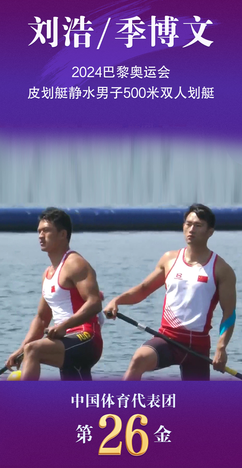 当地时间8月8日,中国组合刘浩/季博文夺得巴黎奥运会皮划艇静水男子500米双人划艇金牌。这是继2004年雅典奥运会和2008年北京奥运会后,中国队第三次获得该项目金牌。