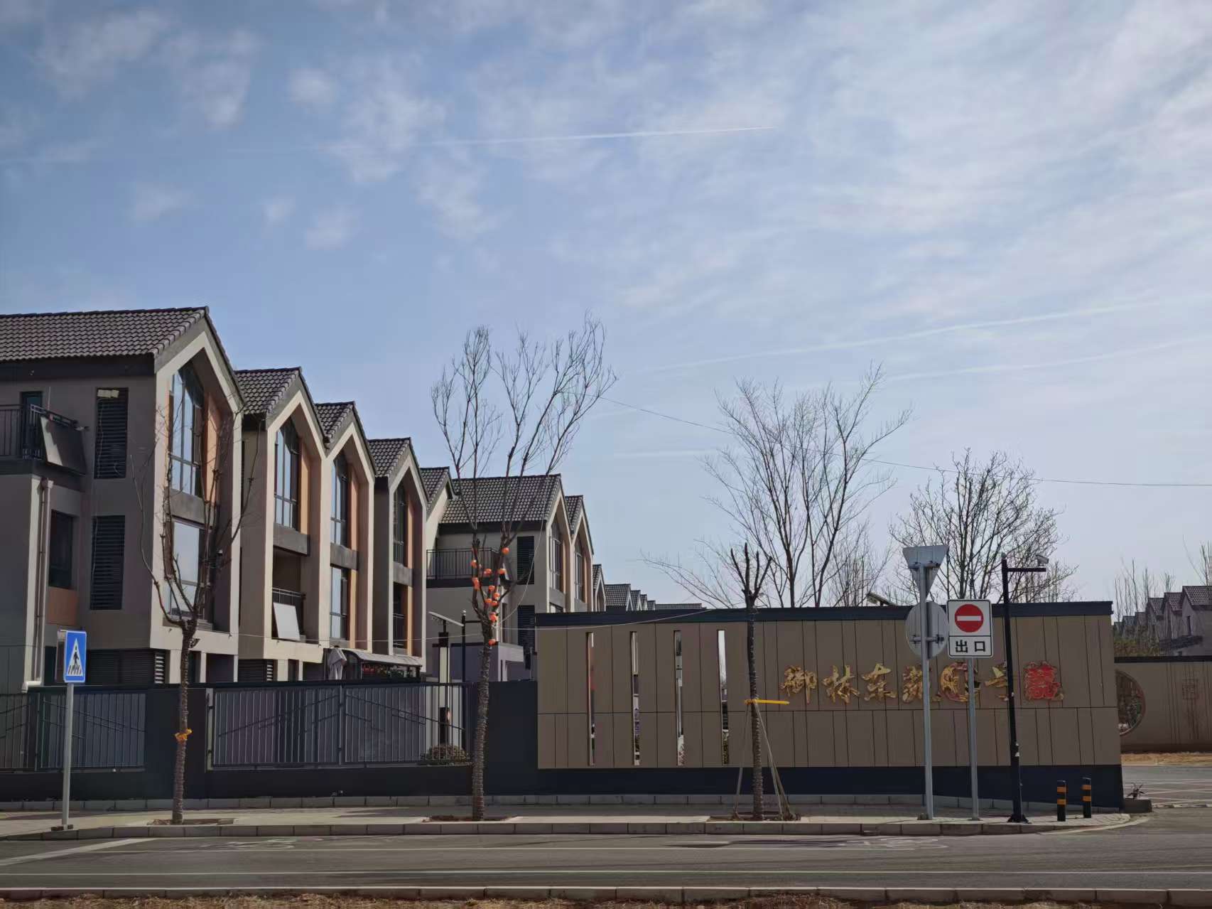 从大兴区安采路后野厂村附近路段往南看,一片漂亮的别墅区错落有致。这里,就是大兴区安定镇几个村庄村民的回迁安置房:御林东苑,紧邻着北京地区独有的古桑园。南北走向的后于路和前野厂中路把小区分成了几个生活区,这两条路北端都和安采路相连。但记者在现场看到,后于路和安采路相连的地方有几十米没有硬化,地上都是砂石,车辆经过时较为颠簸,骑车和步行的村民也抱怨道: