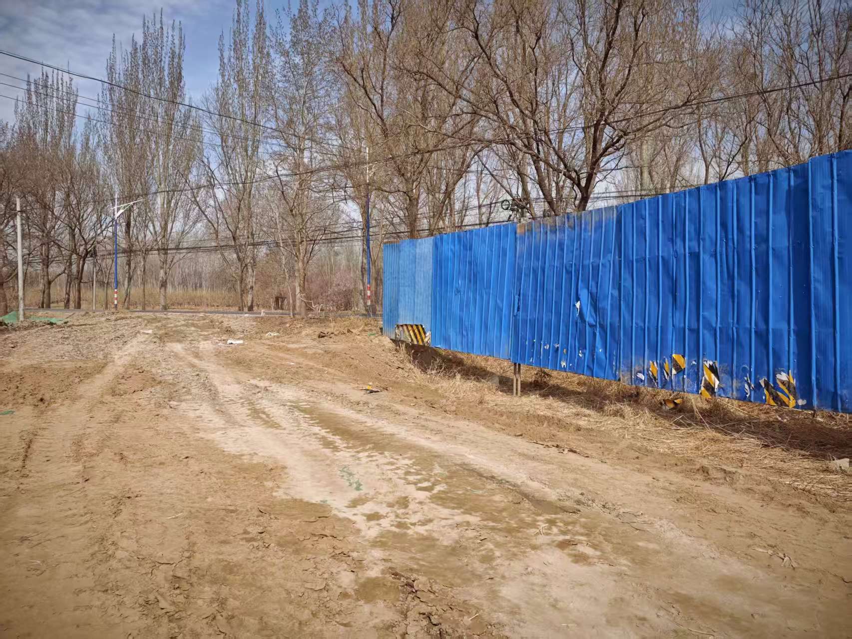 另外一条前野厂中路北端是蓝色的围挡,走进围挡可以看到几辆停放的工程车和布满黄土的路面,再往前走几十米就是安采路。村民们说: