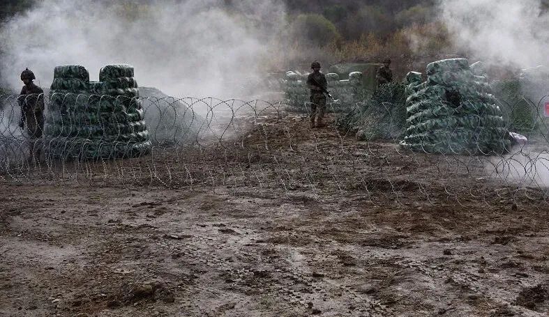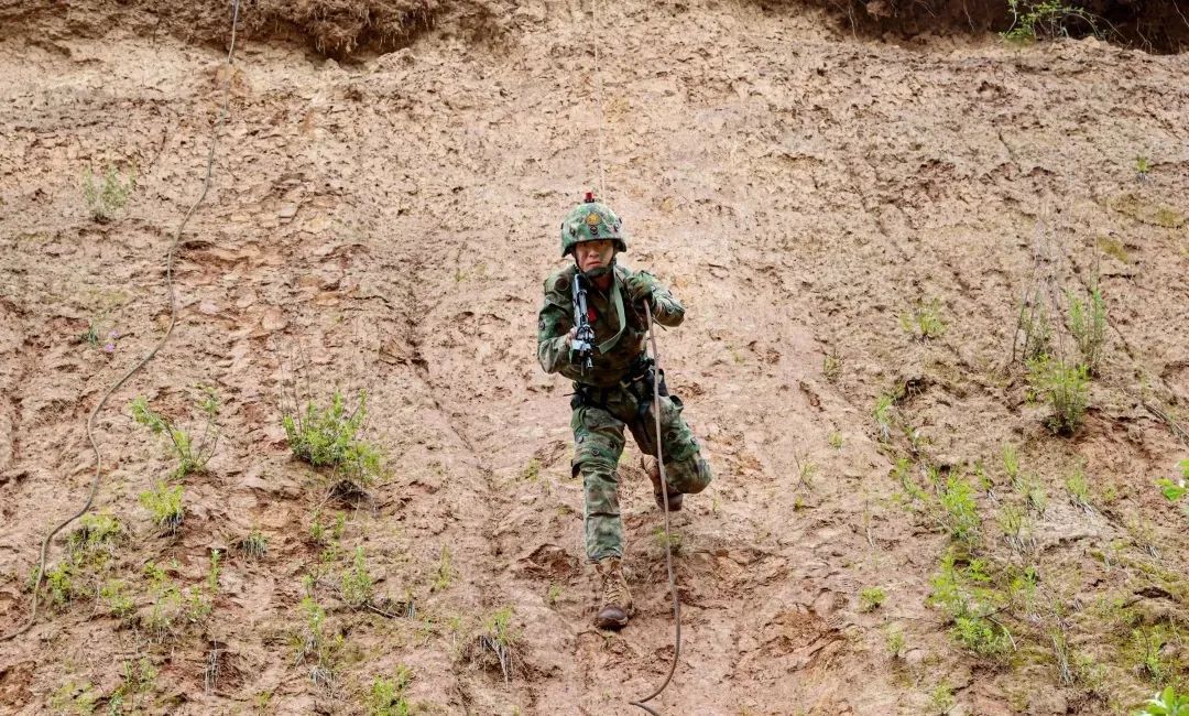 “准备绳索!通过前方陡坡。”指挥员针对现地情况,快速拟定作战计划,牵引官兵抵近目标地域。很快,官兵交叉掩护展开破袭战斗。
