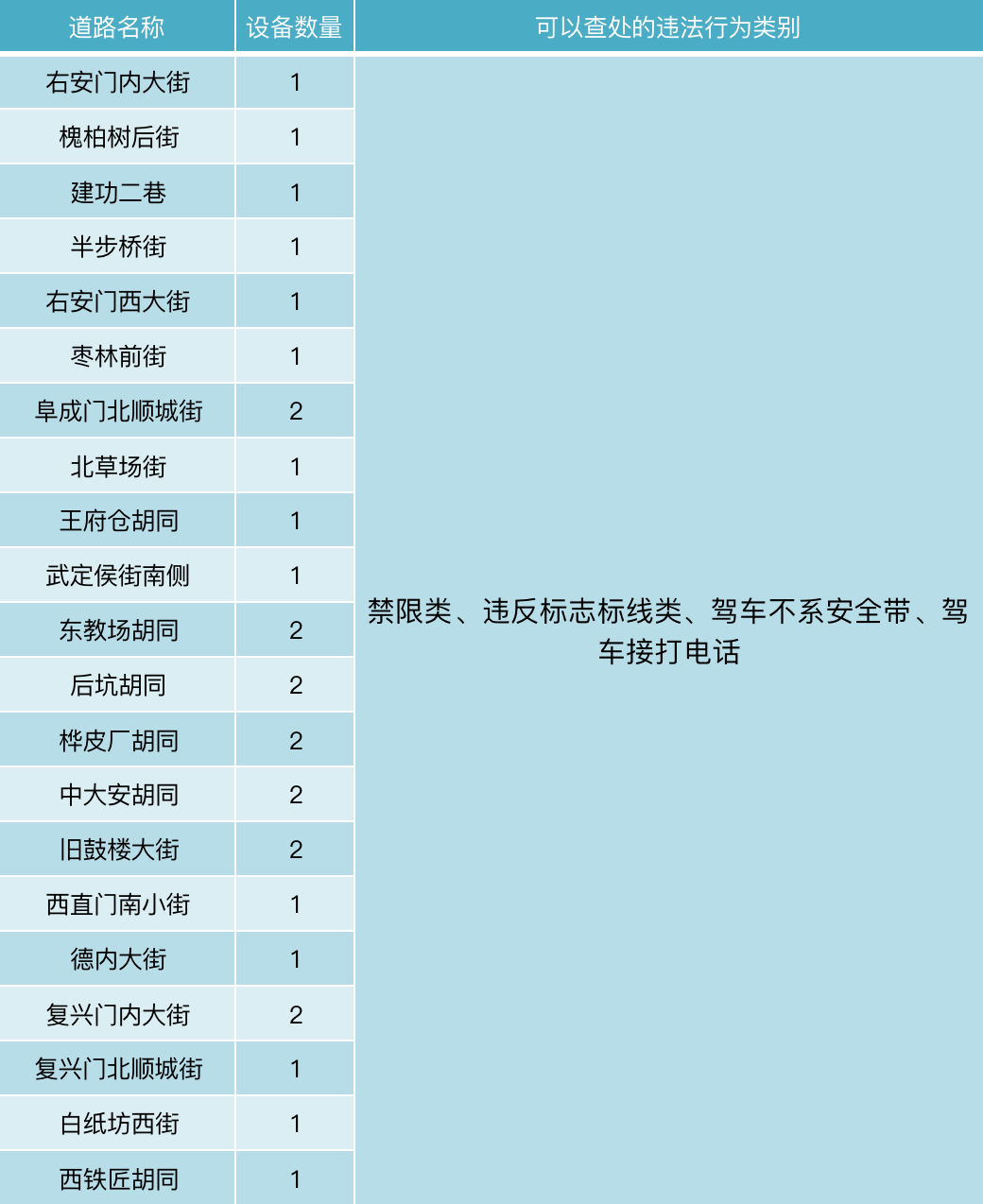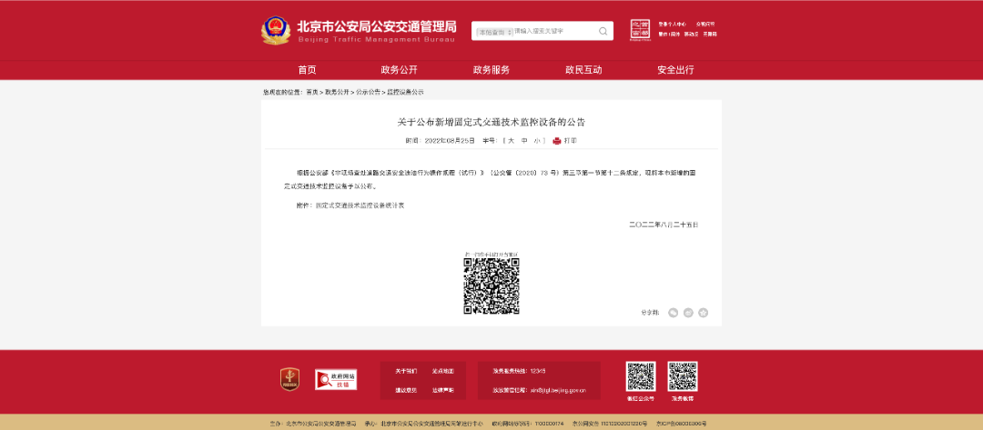 据北京市公安局公安交通管理局网站消息,近日,市交管局公示最新一批固定式交通技术监控设备设置情况。公告显示北京268处道路此次新增了2118个探头,重点查处分心驾驶、违法停车、闯禁行、闯红灯、逆行等交通违法行为。