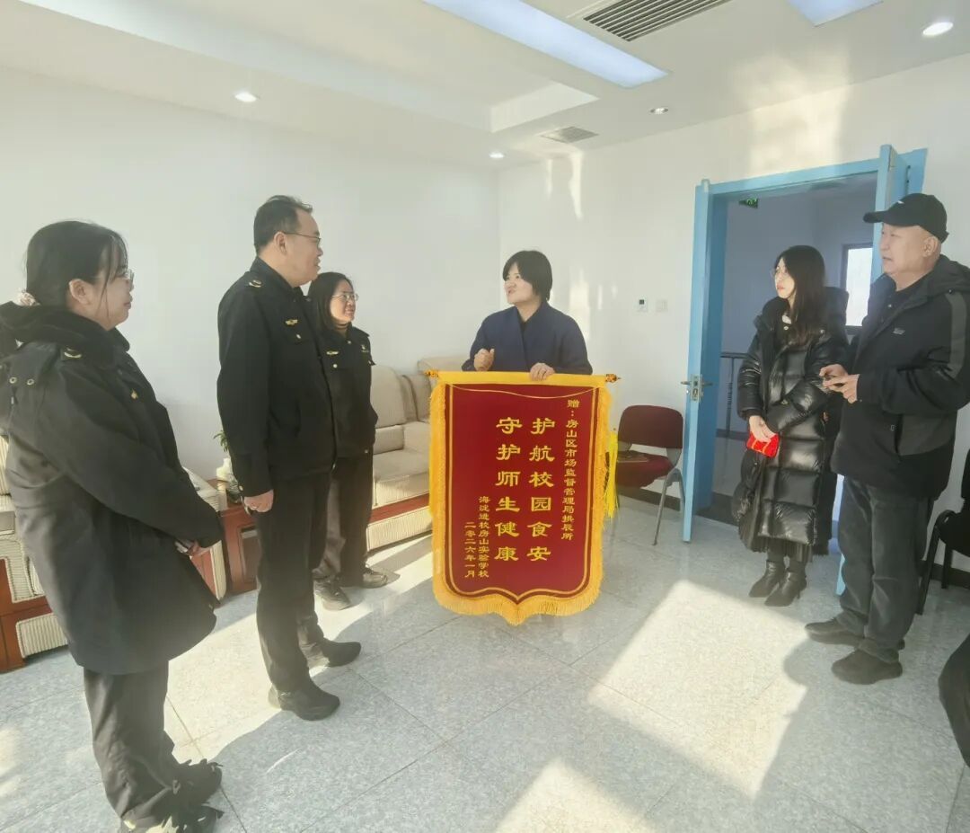 赢得赞誉:日前,学校负责人将一面锦旗送到区市场监管局拱辰所,感谢工作人员在学校食堂筹建过程中给予的贴心指导与精准帮扶,护航该校师生就餐模式从依赖外部“团餐”到自主供餐的成功转型。