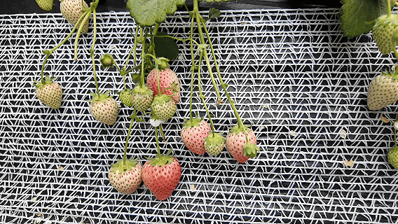 这里的草莓喝的是“特供水”——以海鱼发酵的氨基酸搭配豆渣等有机物质为底肥的肥水,有助风味物质的积累。土壤中还有一支“护卫队”:捕食螨。这些微小生物是草莓的天然“保镖”,专门对付红蜘蛛等害虫,实现真正的生物防治。棚内悬挂防虫网,配备小型害虫智能监测设备,科技感十足。