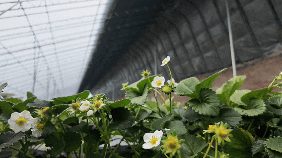 放眼望去,1.2亩的大棚内,一垄垄草莓整齐列队,翠绿的叶子间,一颗颗白里透粉的草莓探出脑袋,宛如温润的玉石遗落在田间。