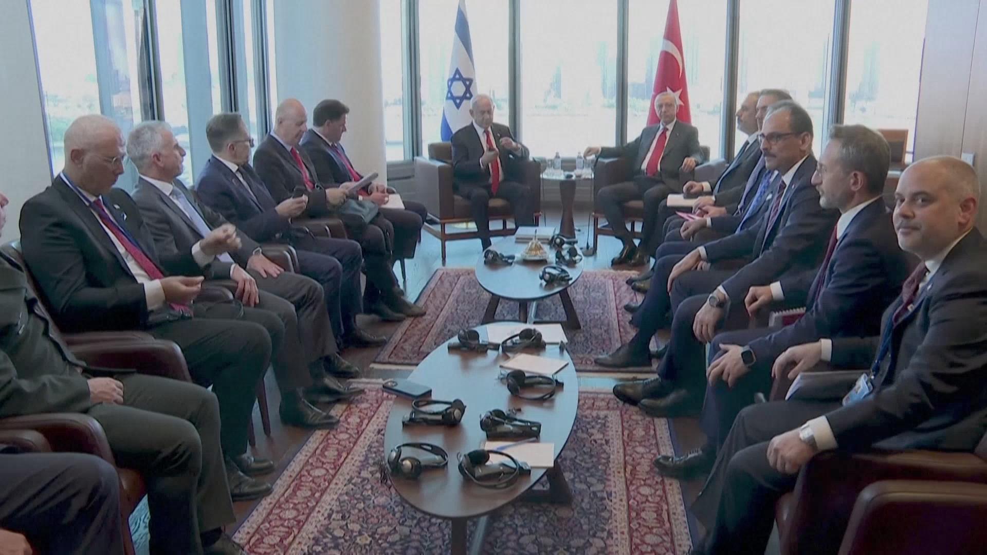 土耳其总统埃尔多安和以色列总理内塔尼亚胡19号在美国纽约出席联合国会议间隙,实现两人首次面对面会晤。按照路透社的说法,这次会晤是土以两国关系改善的一个重要里程碑。