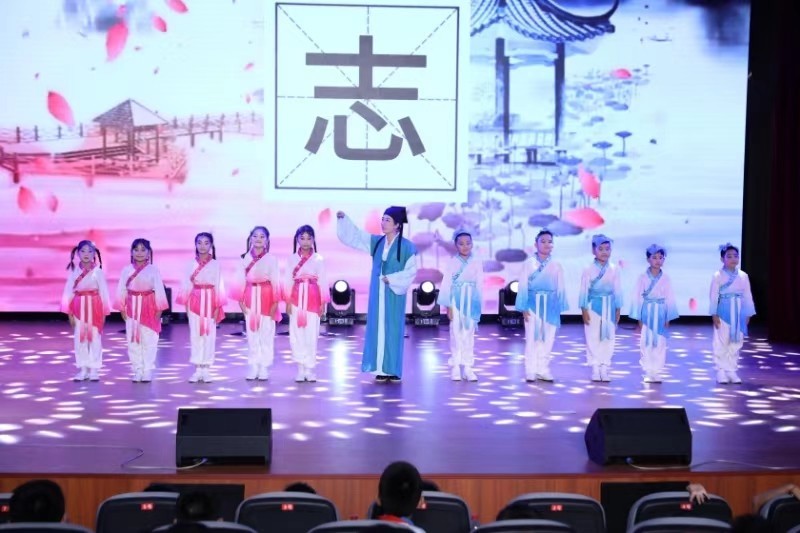 汇报汇演在舞蹈《书声朗朗颂道德》中拉开序幕。