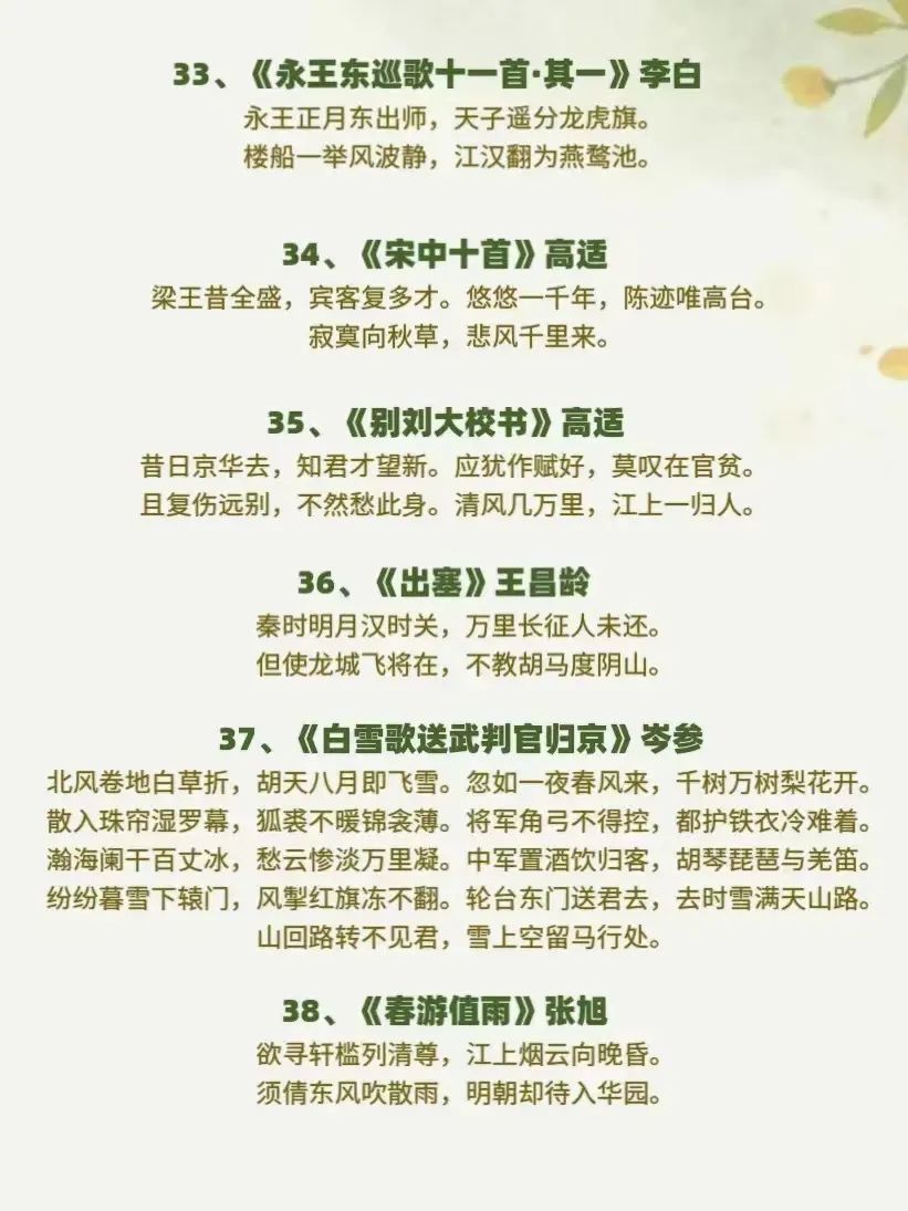 王昌龄、岑参、张旭、郭子仪、哥舒翰......