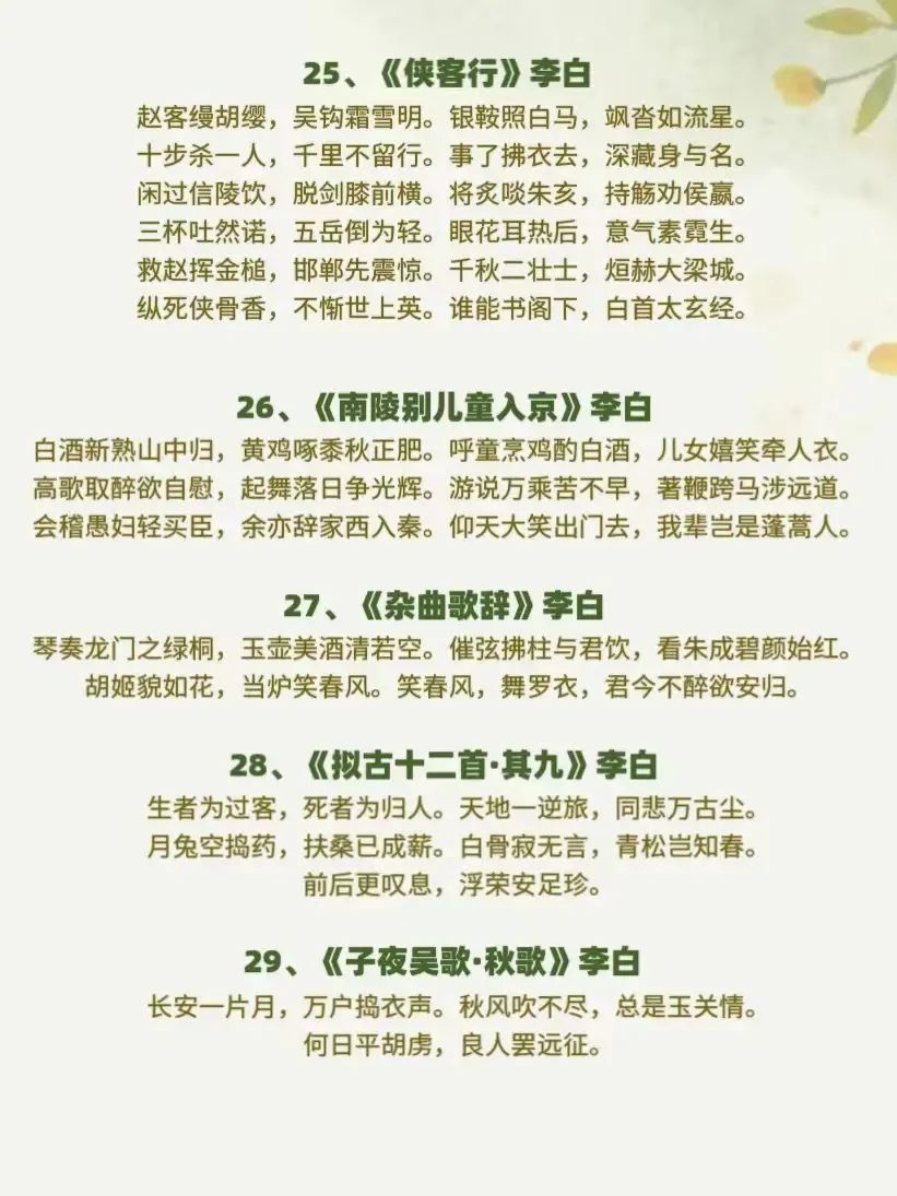 《长安三万里》当中一共用到了48首诗,给大家整理好了请收藏!