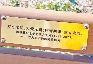 如果您也因某首歌而记得某个人,那么另一把长椅可能会引起共鸣——2025年秋天,方大同“不约而同”歌迷会的十多位歌迷捐赠了这把椅子,铭牌上是一首简短的藏头小诗。