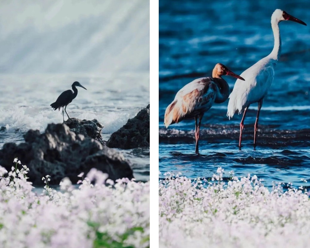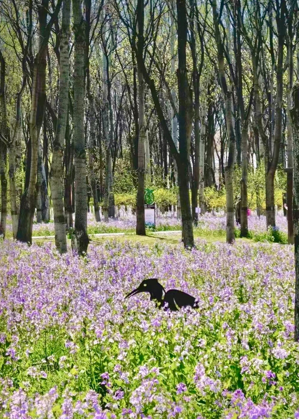 野鸭湖畔,二月兰沿着水线铺展开来,与湖水的清澈相映。鸟儿掠过,轻点水面,看花影摇曳,随风起伏。