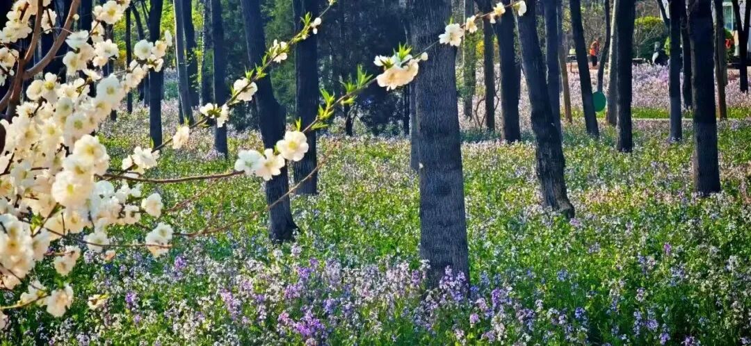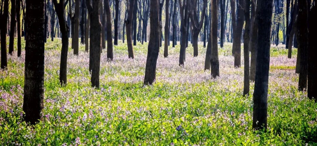 密密匝匝的二月兰,如紫色绒毯一路铺向远方,正如季羡林描写的那样:我们常讲什么什么花“怒放”,这个“怒”字下得真是无比地奇妙。二月兰一“怒”,仿佛从土地深处吸来一股原始力量,一定要把花开遍大千世界,紫气直冲云霄,连宇宙都仿佛变成紫色的了。