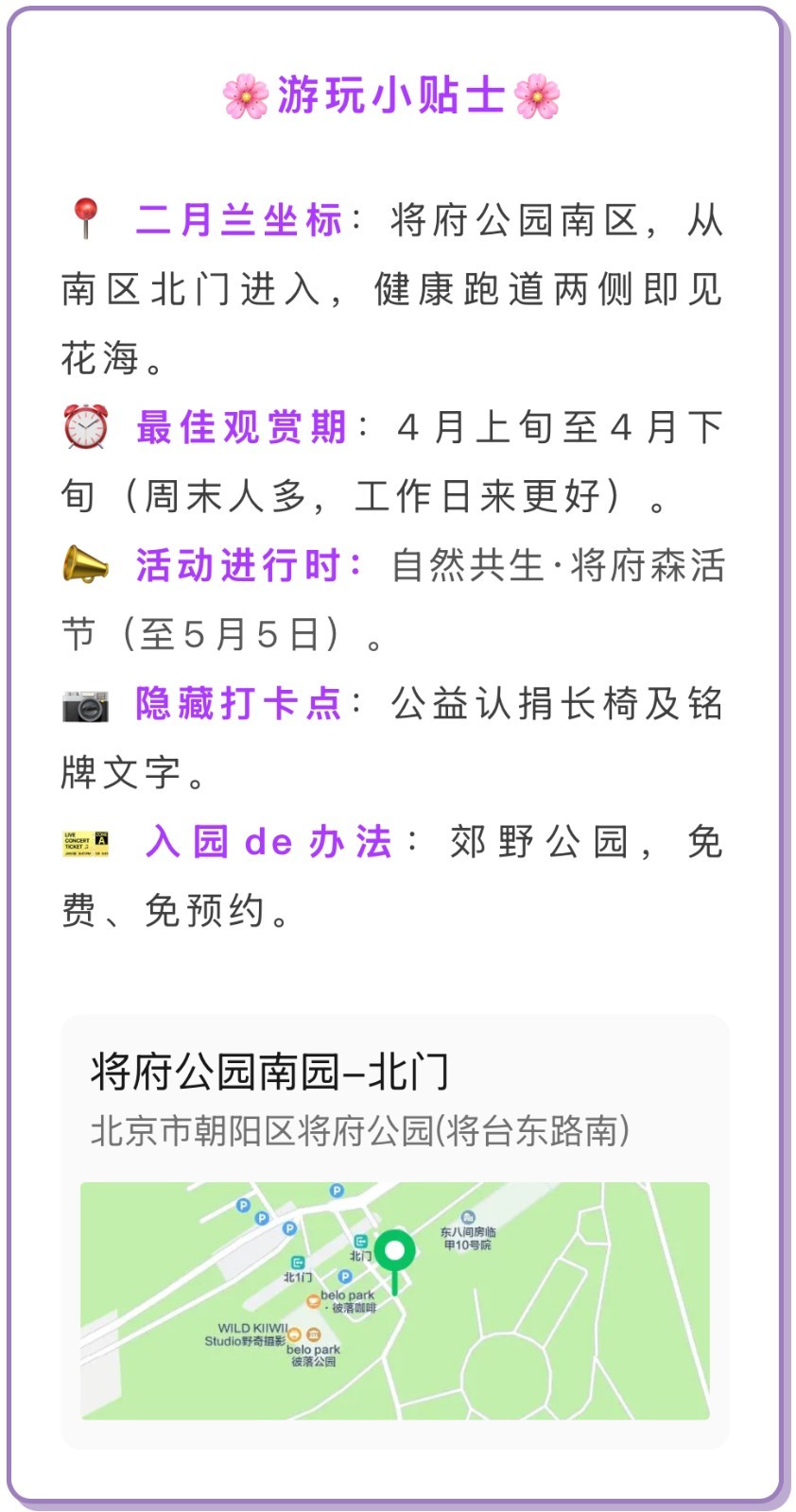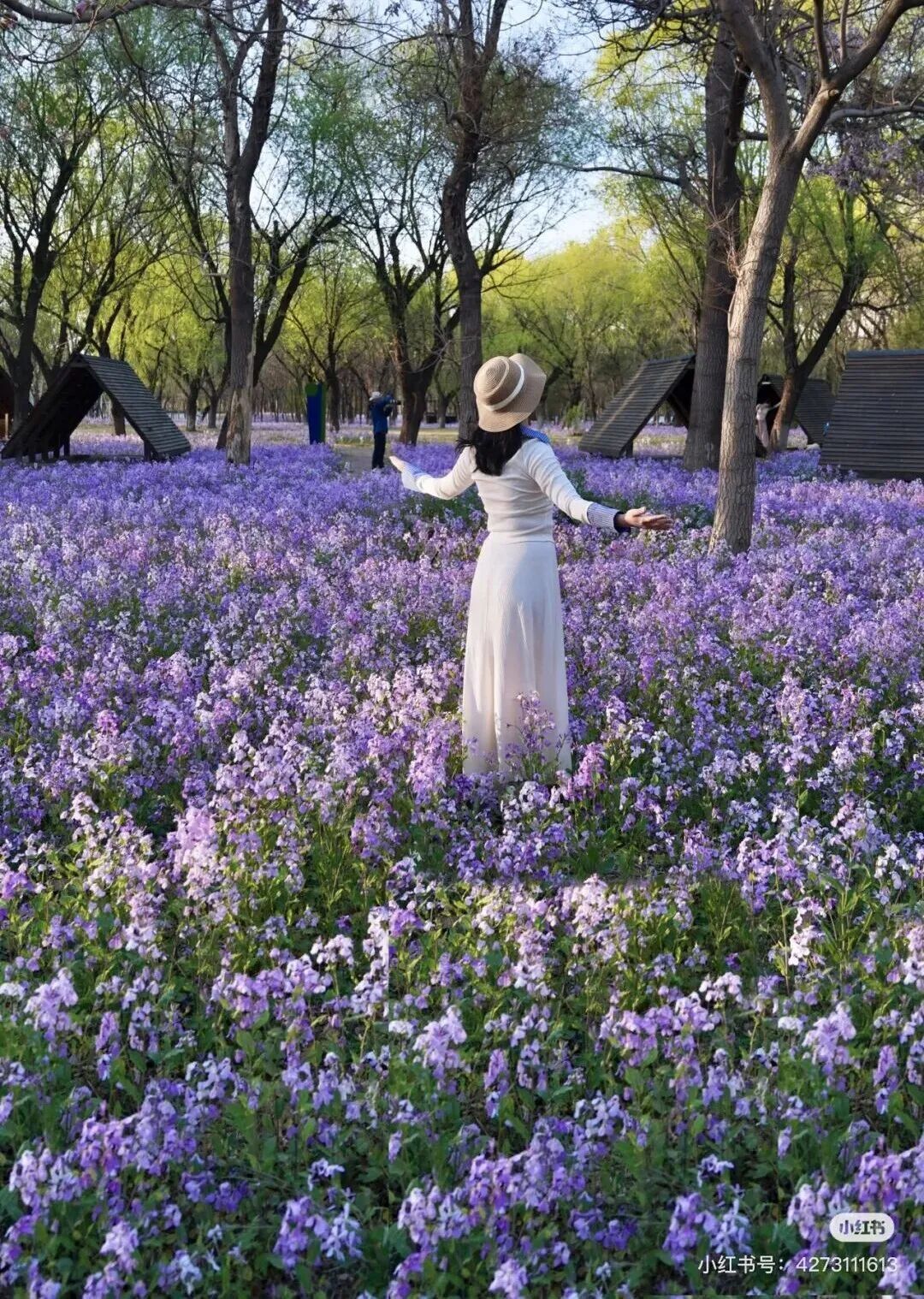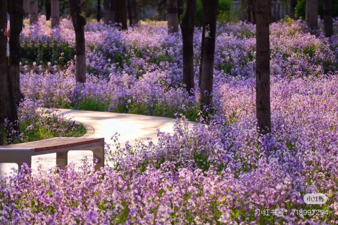 在北京,提到二月兰花海不能不提将府公园,这里是北京二月兰最具规模的观赏地之一。当园内一望无际的二月兰陆续盛放,层层铺展,仿佛浪漫柔美的氛围也无边无界。