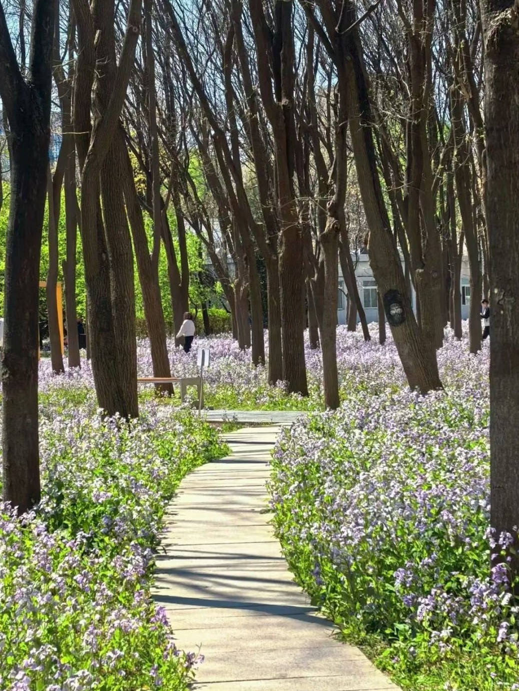 这里的二月兰花海,沿步道呈带状分布。风过时轻轻泛起紫波,行走其间,便被一片灵动、柔和的紫色包围。