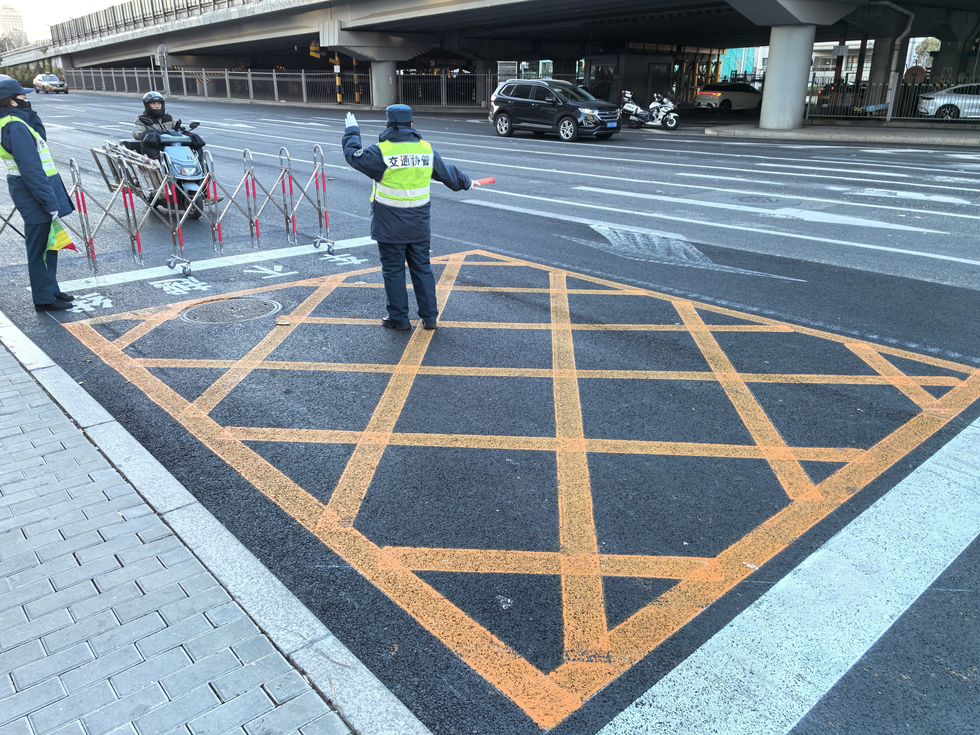 路口因各种交通流交织、通行情况复杂,是交通事故发生几率最大的地点。为保障交通参与者出行安全,交管部门不断改进路口管理措施,从去年开始,交管部门围绕全市161处路口持续开展路口交通秩序整治工作,会同属地政府部门组建“四支队伍”,共同开展交通秩序维护,路口交通秩序环境得到了较大改善。近日,记者发现,在市区多个路口,非机动车道停止线施划位置发生了变化,后移了3至5米,在腾出的位置施划了黄色网格线。这一举措不但使非机动车与人行横道之间的间隔空间更大,减少了非机动车与行人发生交织冲突的可能性,配合上交警和协管员的劝导,电动自行车和自行车在停止线后等待,行人通过人行横道也更加顺畅,路口通行秩序明显改善。
