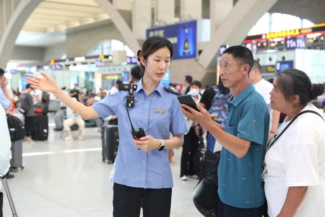 天津站增派80多名骨干人员和120名青年志愿者在进出站通道、安检处、候车厅、站台等区域进行宣传引导,向旅客介绍安全出行事项,确保旅客的人身和财产安全。