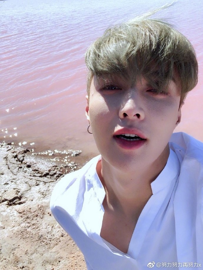 再看这几张照片,张艺兴是放飞自我了吗?这销魂的表情是想表达什么呢?还有细心的网友发现,这海水的颜色是红色的,难道张艺兴是想要拍上红色的海水,才找到这仰头自拍的角度吗?