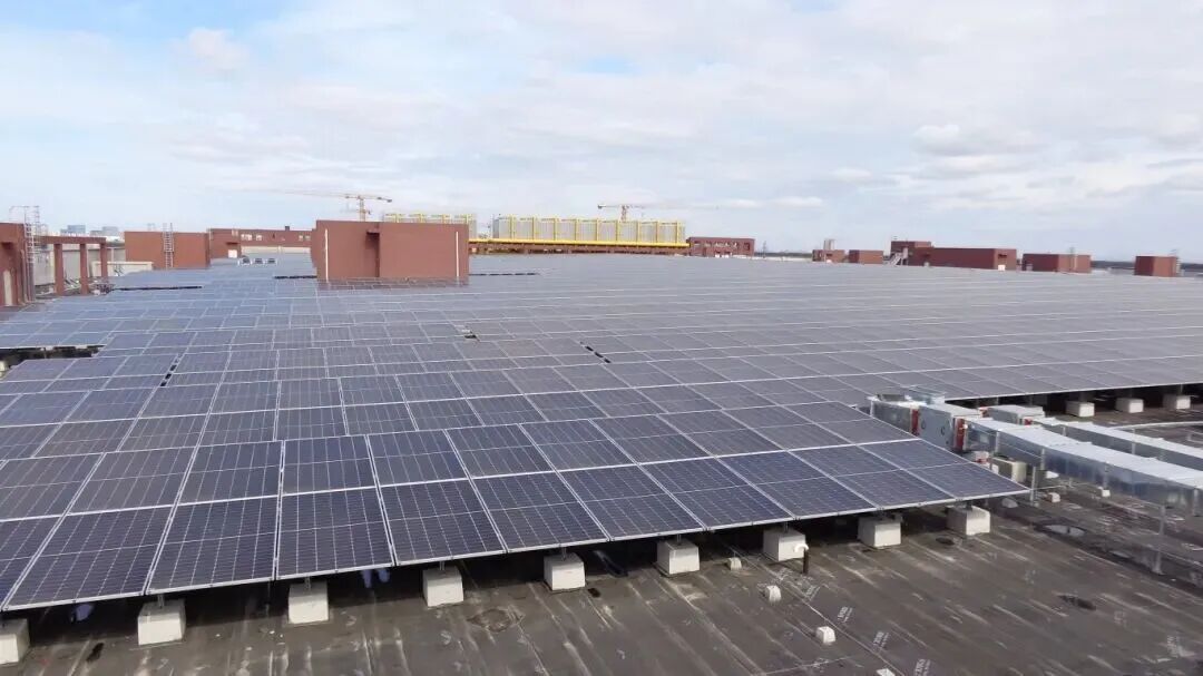北方华创厂房屋顶铺设高效率光伏组件。北方华创/供图