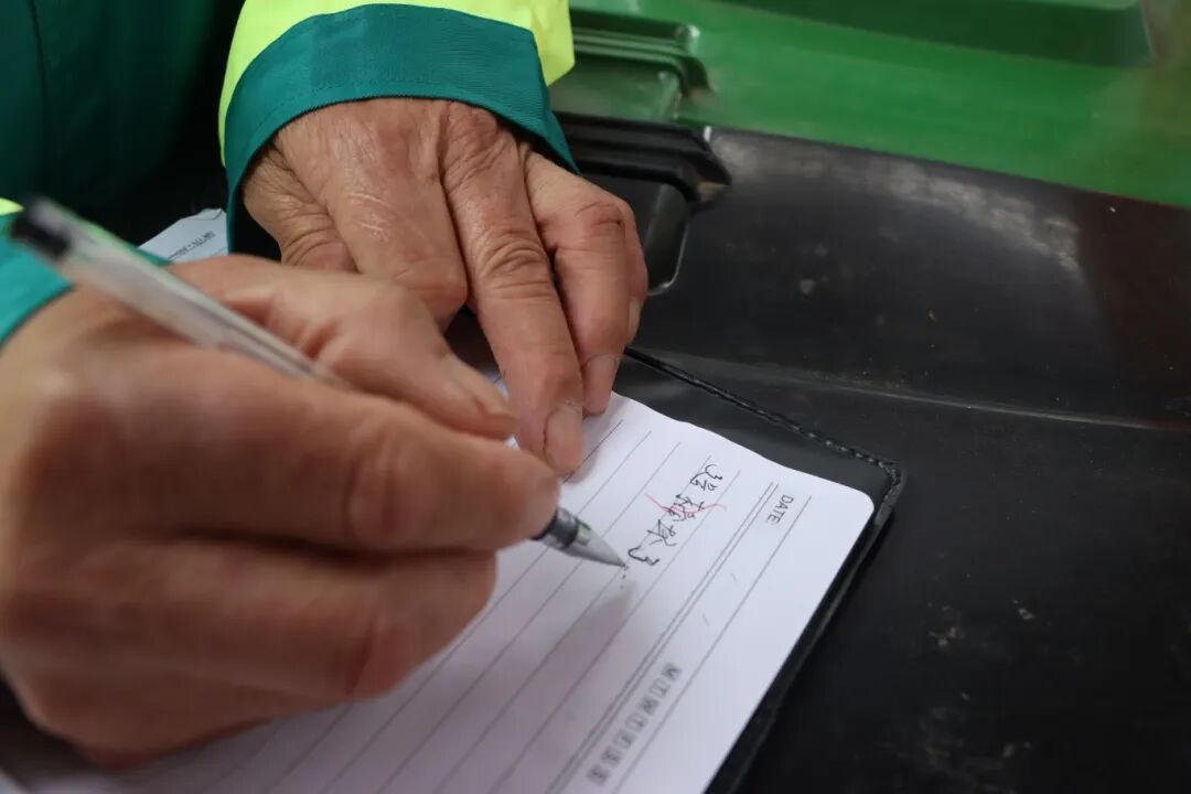 李文财还给自己定下了工作规矩:每天巡查三遍所有桶站、每周培训一次值守人员。16个桶站分布零散,最远的两个相隔近2公里,他每天往返奔波,从不间断;随身携带的小本子上,详细记录着每个桶站的运行情况、存在问题及整改进度——“3号桶站厨余垃圾桶损坏,已联系维修”“8号桶站值守人员对分类标准不熟悉,需重点培训”……村里的值守人员多是老年人,接受新知识慢,他便耐心“传帮带”。有位值守大姐教了七八次,仍分不清可回收垃圾和其他垃圾,李文财便连续多日陪岗示范,手把手教学,直到对方完全掌握分类标准。