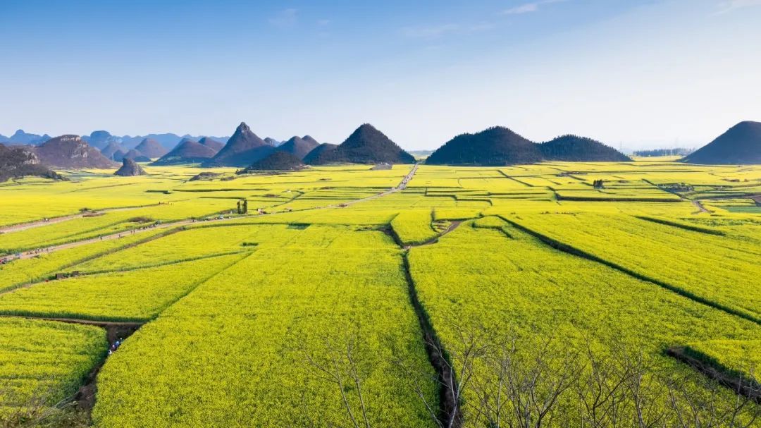 专列早上抵达昆明,后乘车至罗平,参观游览【金鸡峰丛·万亩油菜花田梯田】,这里是云南最大、中国最美的油菜花基地之一,罗平被誉为“金玉满堂”之乡,有众多锥状小山丛,故称“金鸡峰丛”,也是中国四大峰丛之一。接着前往游览【九龙瀑布群】,九龙瀑布群风景区是“罗平古十景之一的三峡悬流”所在地。