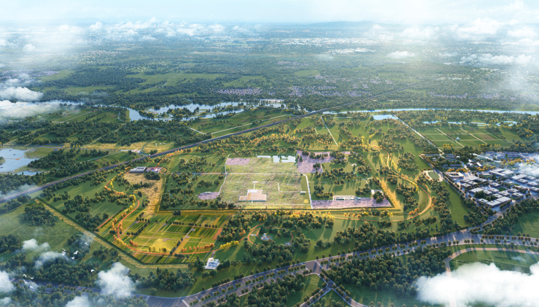 方案构建“一园三片一环一区两核”总体框架,六大场景风貌“化墙为景”,融合园内外,助推“镇园融合”。遗址公园强调文化遗产保护,融合生态文明发展,坚持轻介入、场景化和可持续的理念,紧密连接生态资源,构建蓝绿网络,对考古价值点进行多维度、沉浸式、数字化的展示和体验设计,让文物说话。馆站以“鼎天鬲地”为理念,萃取燕周文化菁华,突显传统营城礼序;通过展研功能一体化设计,打造文化遗产保护、展示与研究的综合性平台。考古聚落与村园馆站联动共生,利用腾退土地打造田园景观院落带,主街运营周末市集,点状植入分布式文博产业。田园小镇以“燕文化”主题街、“文明对话”酒店群、“知识流动加速器”共享街区为服务支撑。同时,井田农研、休闲渔猎、林地复育体验与湿地公园、琉璃河大桥联动,融入花园城市建设。