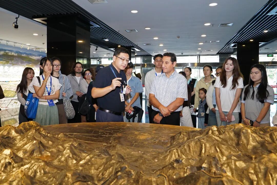 在展馆大厅里,阿索莫先生认真听取了大厅墙面上习近平总书记关于北京城市规划工作重要讲话的介绍,在“北京湾”铜雕前仔细端详铜雕上展示的北京地理风貌,了解北京中轴线与城市格局、城市历史文化背景的关系。在《北京老城》大型青铜浮雕前,阿索莫先生了解到了以中轴线申遗为抓手的北京老城整体保护与复兴的规划实施过程及取得的成效。在“影见中轴——北京中轴线主题影像展”展厅,阿索莫先生通过丰富详实的北京中轴线影像对北京中轴线上的历史建筑景观、人民生活景象和今昔城市风貌有了全面深入的了解。