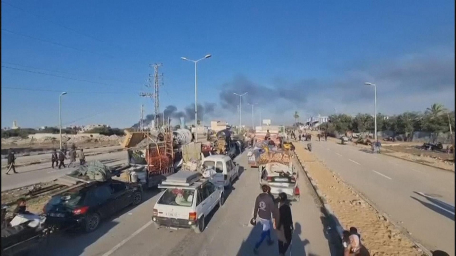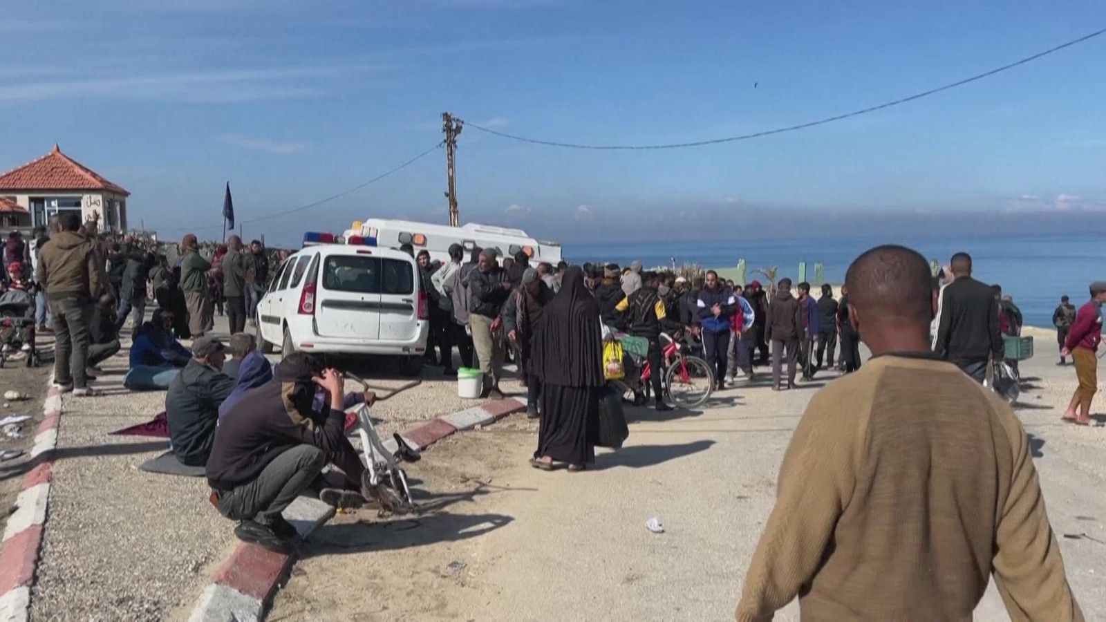 按加沙停火协议要求,以军需于26号从加沙中部的内察里姆走廊部分撤离,并开始允许巴勒斯坦民众通过沿海公路——拉希德公路步行返回加沙北部。25号,大批流离失所的加沙民众聚集在内察里姆走廊南边一侧,苦苦等待着以军放行。以方的临时变卦让他们倍感无奈,但他们仍然不放弃回归北部家园的希望。