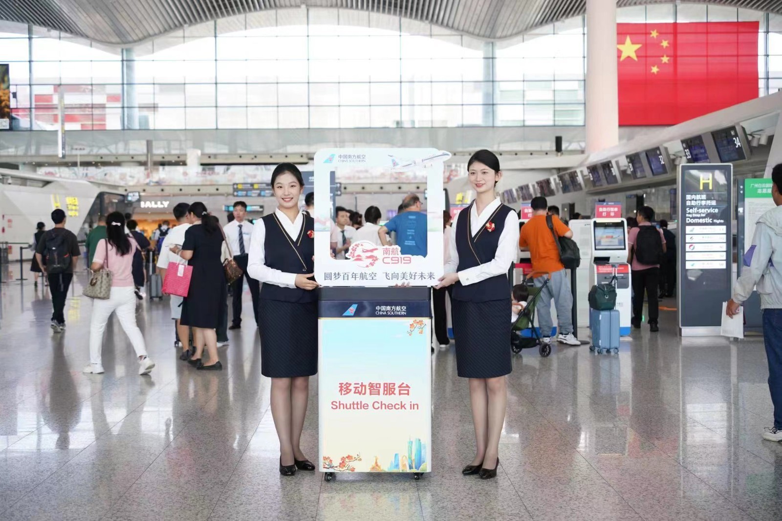 首航当天,南航在广州白云国际机场设置多个C919专属值机柜台,配备专属航显、落地牌及插牌等。C919运行第一个月,南航将在广州白云国际机场设置C919专属值机柜台,为旅客宣传科普C919相关资讯,持续助力国产大飞机商业运营。在9月19日至21日乘坐南航C919的旅客,将获赠919航空里程以及特色纪念品,享受国内转国际航班免费中转住宿一晚等多项特色服务。