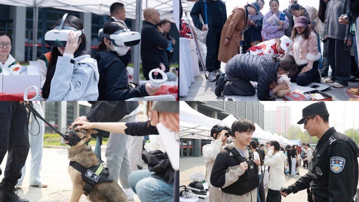 此次“4·15”全民国家安全教育日主题活动包含反恐防暴、禁毒反诈、消防应急、实验室安全、反邪教、健康急救、法制宣传、防震减灾等宣传体验活动。场馆外的体验区同样热闹非凡。九大主题展台依次排开,集知识科普、技能实训、装备展示、互动体验于一体,让师生在沉浸式参与中学习安全知识、掌握防范技能。活动现场通过普及实用自救互救与防范知识、消防装备体验、交通执法宣传、模拟驾驶互动游戏等场景化、体验式教学,强化了消防安全与交通安全意识。各展区前人头攒动,师生积极参与、踊跃互动,营造出“人人讲安全、事事为安全、时时想安全、处处要安全”的浓厚氛围。