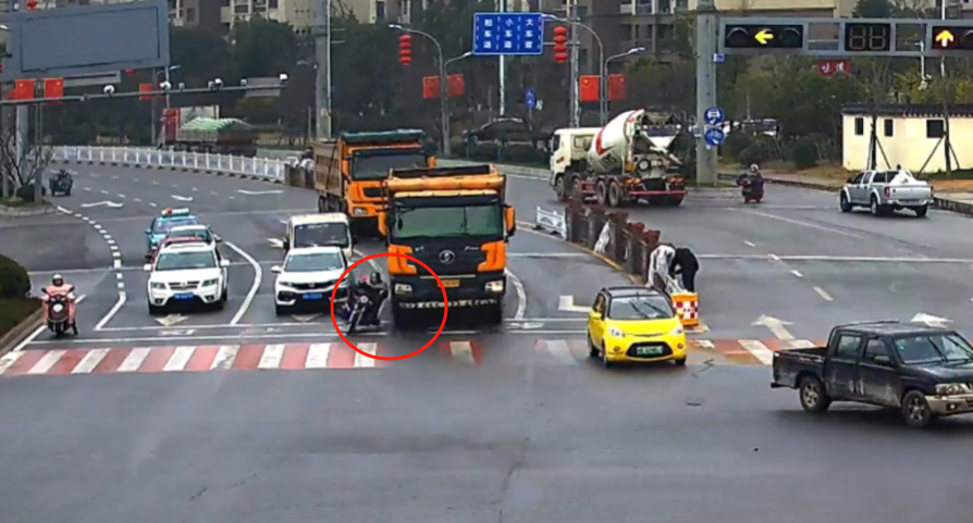 大货车突然倒车,电动车闪躲不及被卷入车底。