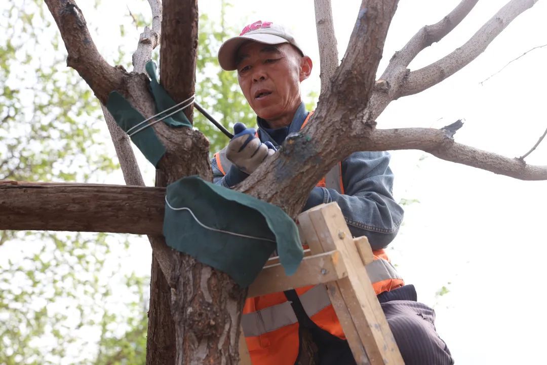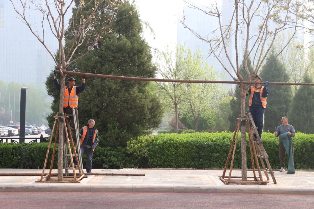 应对大风天气,对新植及存在倒伏隐患的树木进行加固。