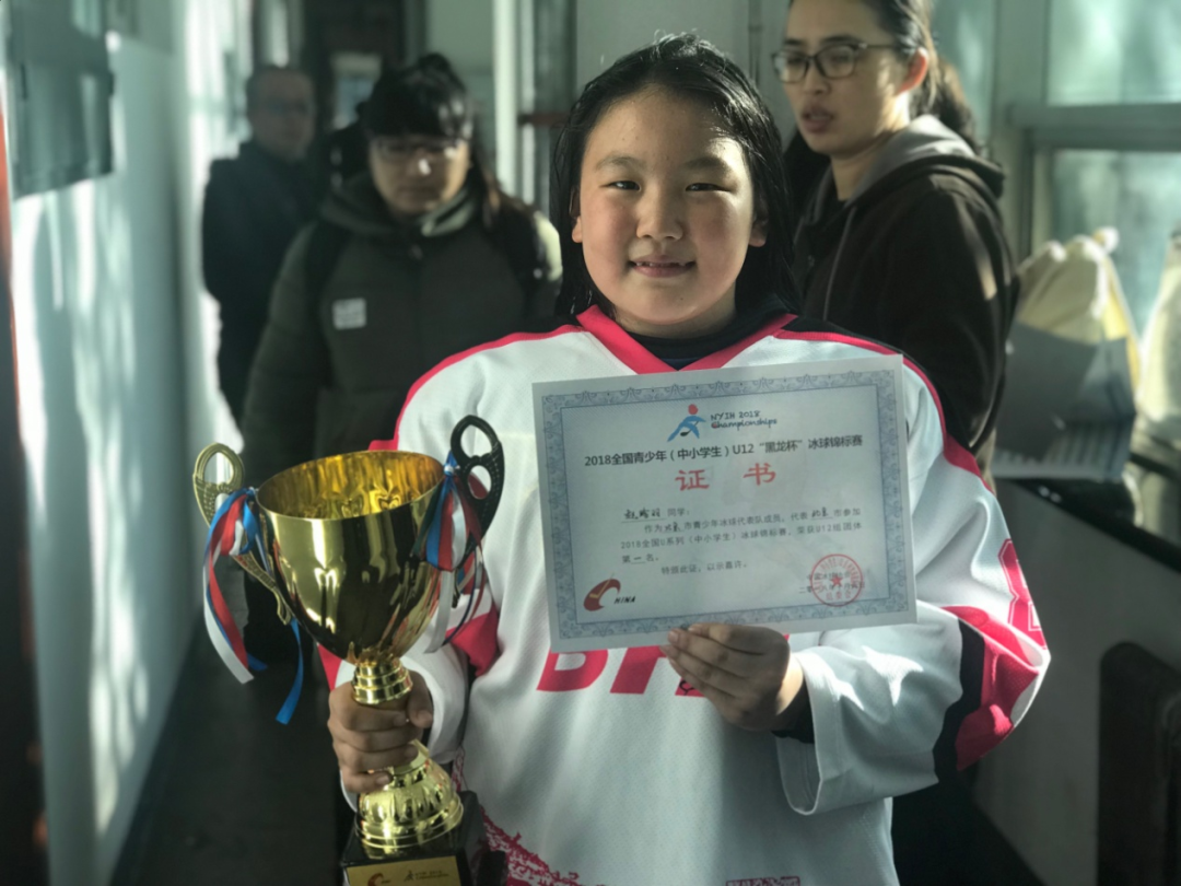 也许是因为天分,也许是出于喜爱,小晗羽从小就在冰球这个项目上展现出了与同龄人的不同。2018年,年仅11岁的赵晗羽就代表北京青少年U12女冰,参加了全国第一届U系列冰球比赛,并在最后一场中,独进6球,帮助北京队战胜哈尔滨队,首次获得全国冠军。也奠定了之后北京青少年女冰在u12这个项目上的三连冠。