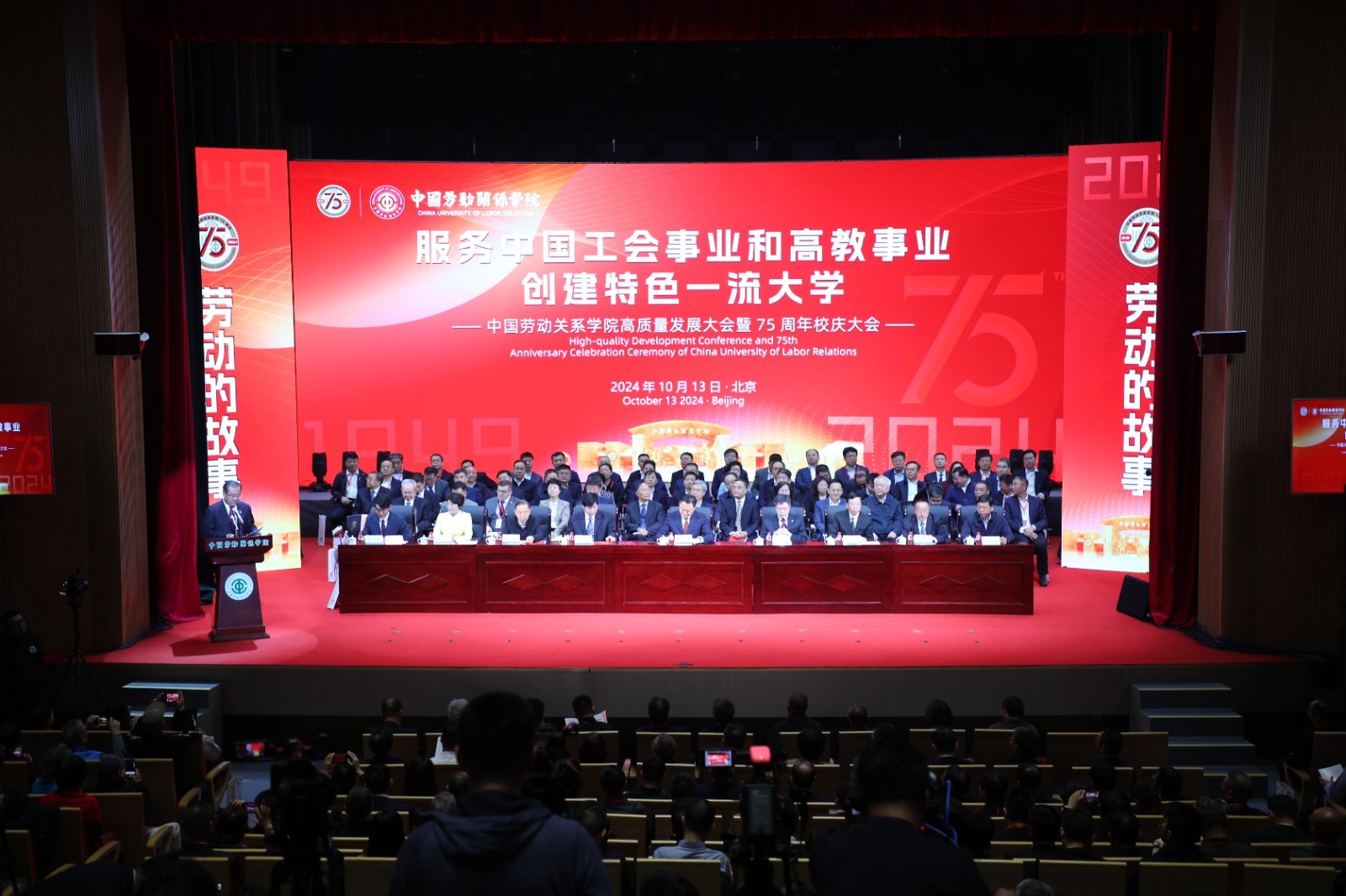 10月13日上午,中国劳动关系学院高质量发展大会暨75周年校庆大会在北京校区致远楼礼堂隆重举行。