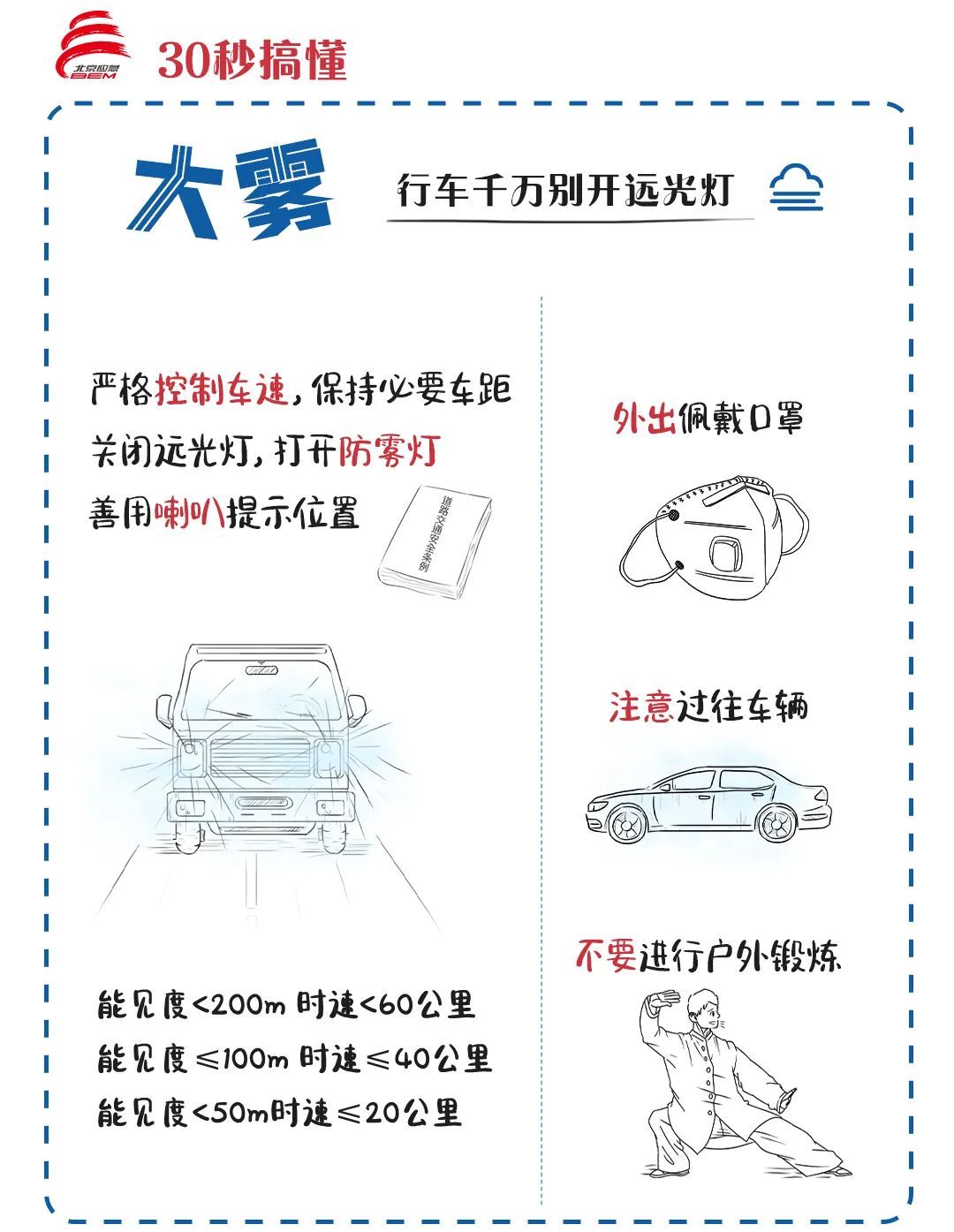 (3)出行前应关注交通信息,驾驶人员注意雾的变化,小心驾驶。