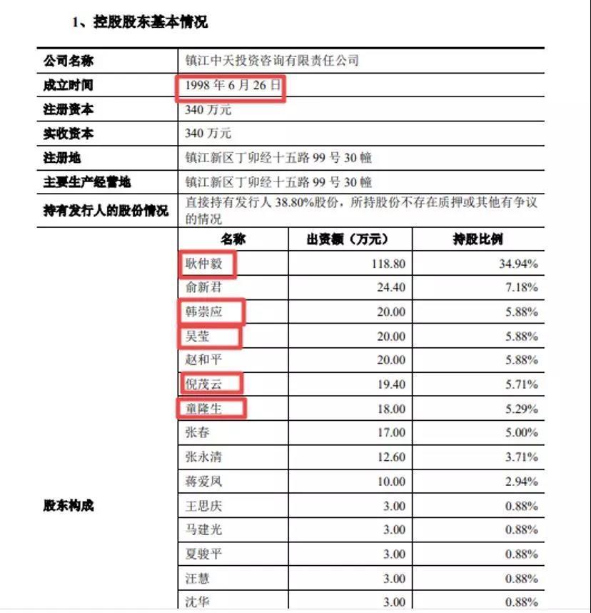 耿仲毅为何没有披露其在镇江第二制药厂的具体时间和任职情况呢?对照招股书第50页披露的吉贝尔控股股东镇江中天投资咨询有限责任公司(简称“中天投”)披露情况,可知其中端倪。